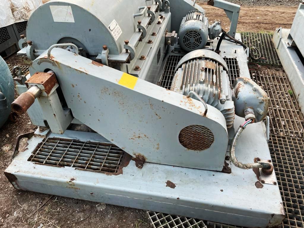Max bowl speed 3200 RPM, 2036 x G, adjustable liquid ports, hogged-out cake ports with wear liners & flingers. 4.25" single lead STC tiled conveyor, 50 HP XP motor 50/60 Hz, 3.5 kNm 57:1 planetary gearbox, GS coupling, 20 HP XP backdrive, guards, vibration switch/isolators, feed tube, grease lubricated bearings and chutes, unitized on oilfield skid. Very good condition. Located in India.