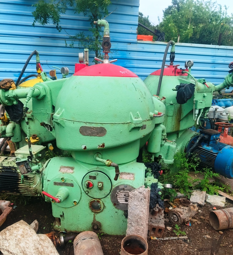 Max bowl speed 6540 RPM, rated @ 12,300 LPH, oil discharged under pressure, 20 HP motor 230/460/3/60/1750 RPM and tools. 1985 vintage. Very good condition. Located in India.