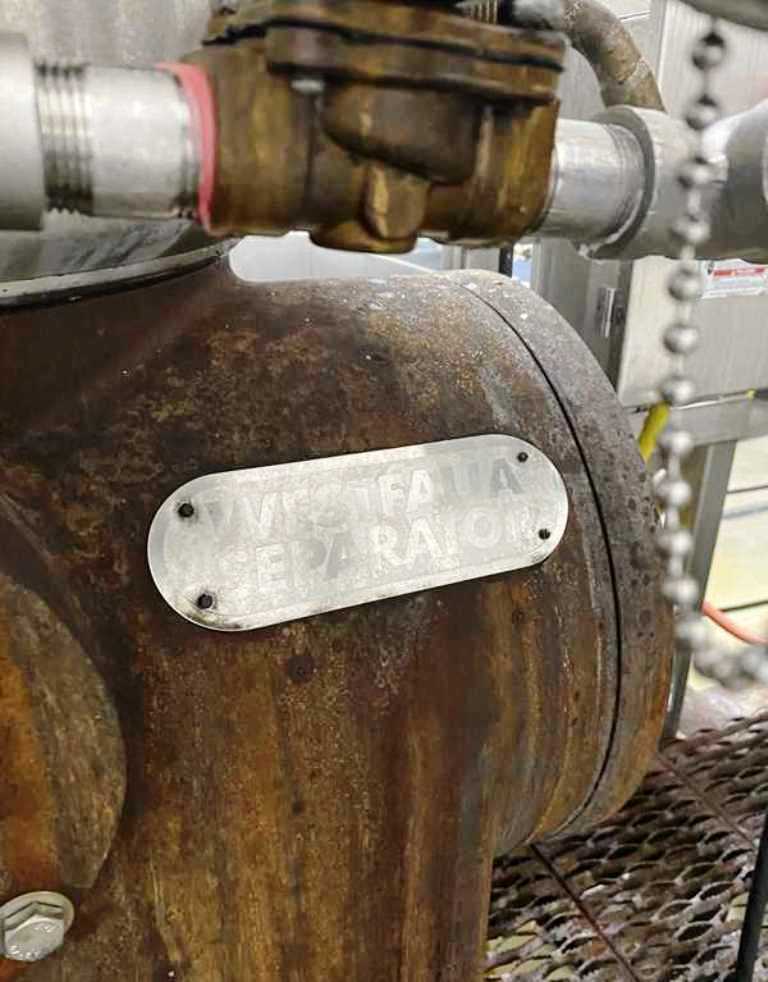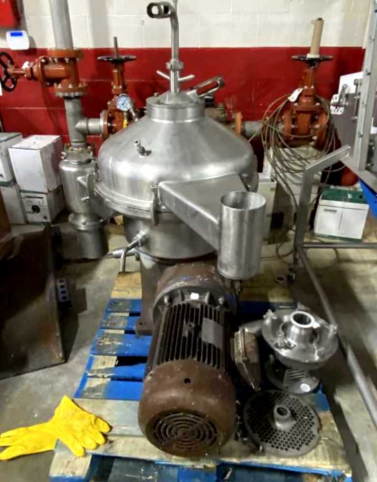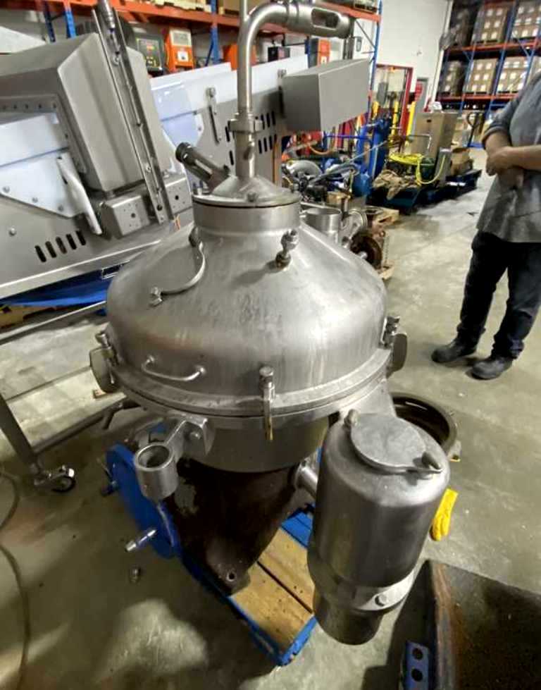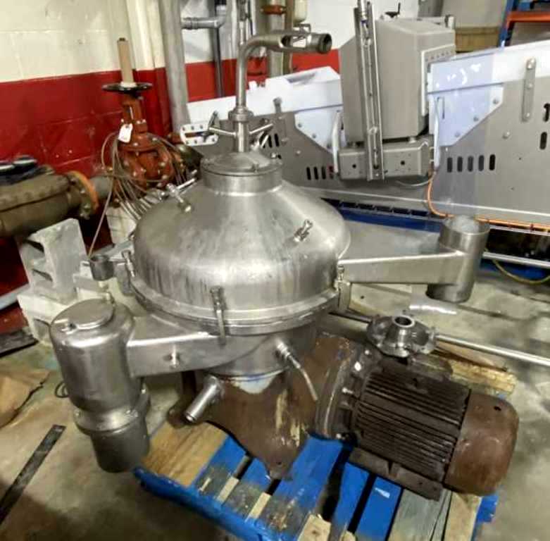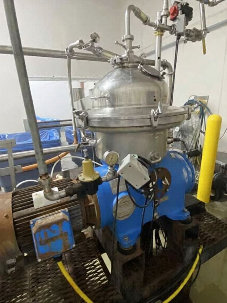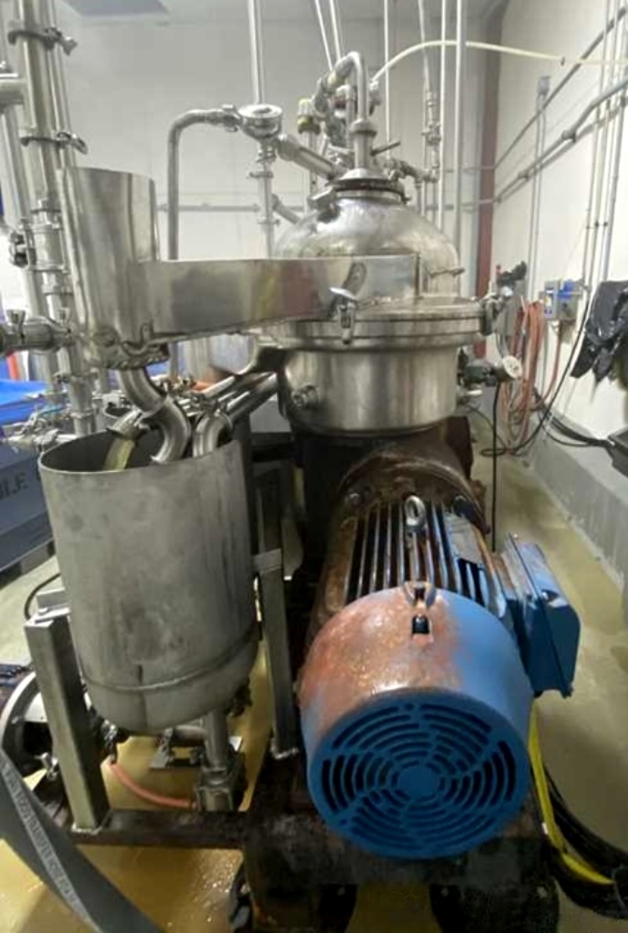 (4) Westfalia SA 20-03-076 separators, 316SS. are engineered for high-efficiency separation processes, making them an ideal choice for various industrial applications. With a maximum bowl speed of 6500 RPM, these separators are capable of handling a rated capacity of 12,000 liters per hour (LPH), ensuring that your operations can maintain high throughput levels. The heavy liquid phase is discharged under pressure, which not only enhances the efficiency of the separation process but also minimizes the risk of contamination. Powered by a robust 20 HP motor operating at 575 volts, 3-phase, and 60 Hz, these separators are designed for reliability and performance, even in demanding environments. The inclusion of a sludge cyclone further optimizes the separation process by effectively managing the sludge, ensuring that your system remains clean and operational without frequent downtime for maintenance.