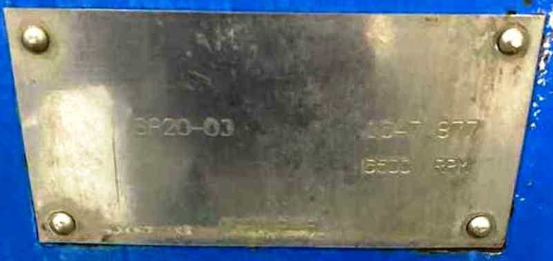Max bowl speed 6500 RPM, rated @ 12,000 LPH, heavy liquid phase discharged under pressure, 20 HP motor 575/3/60/1770 RPM, sludge cyclone, tools and control panel. 1983 vintage. Very good condition. Located in Canada.