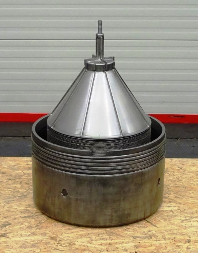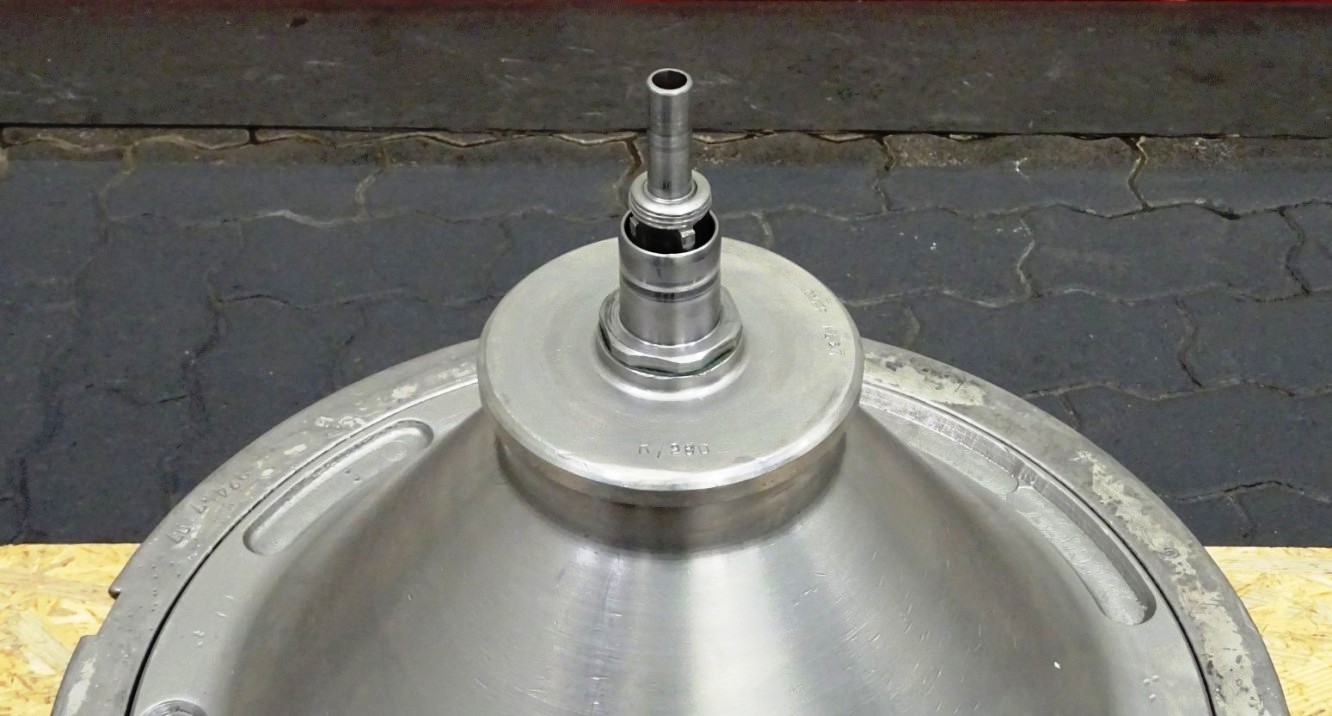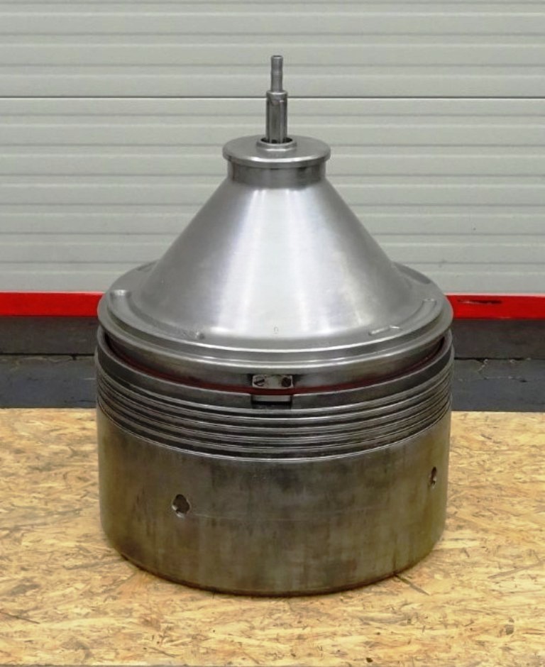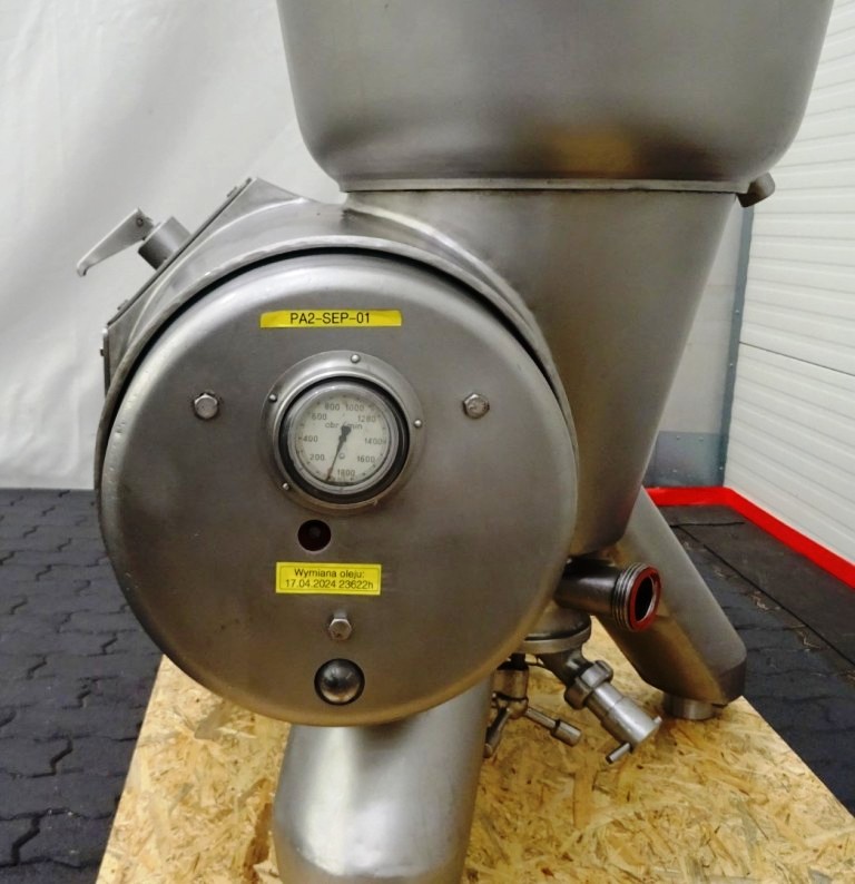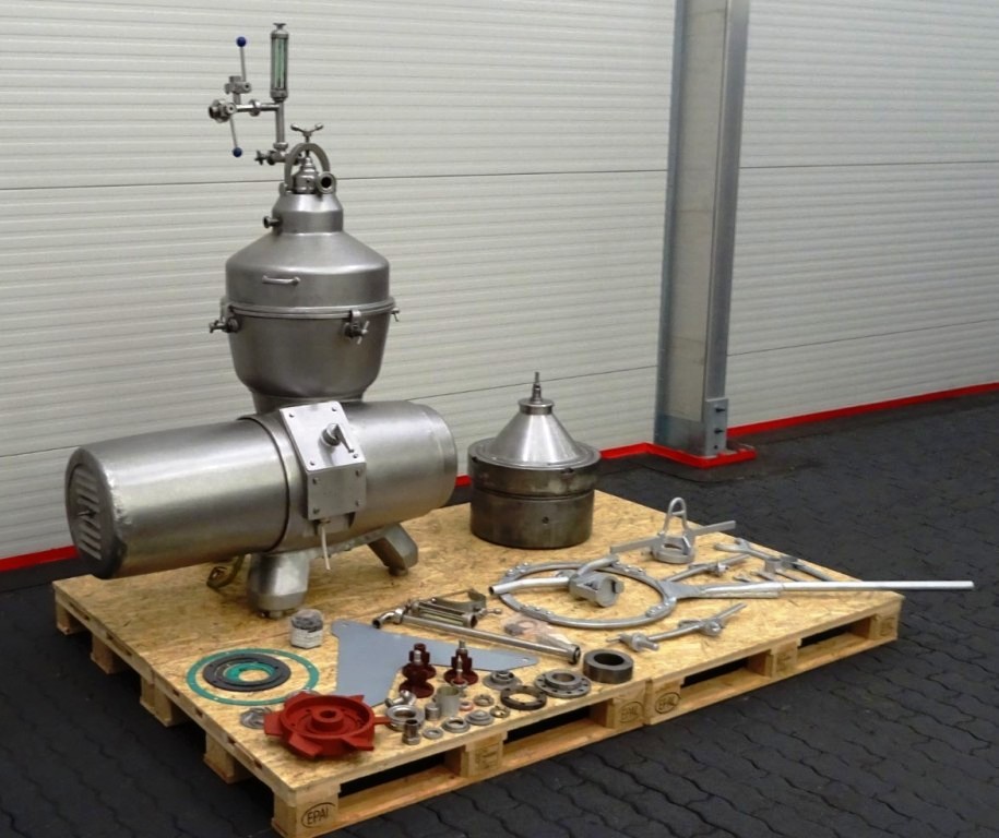 Max bowl speed 4500 RPM, rated @ 10,000 LPH, 22,000 PPH. 11 KW motor 380/3/50/1460 RPM, inlet and outlet pipes with flow indicator, tools and some spare parts. 1974 vintage. Excellent condition. Located in Europe.