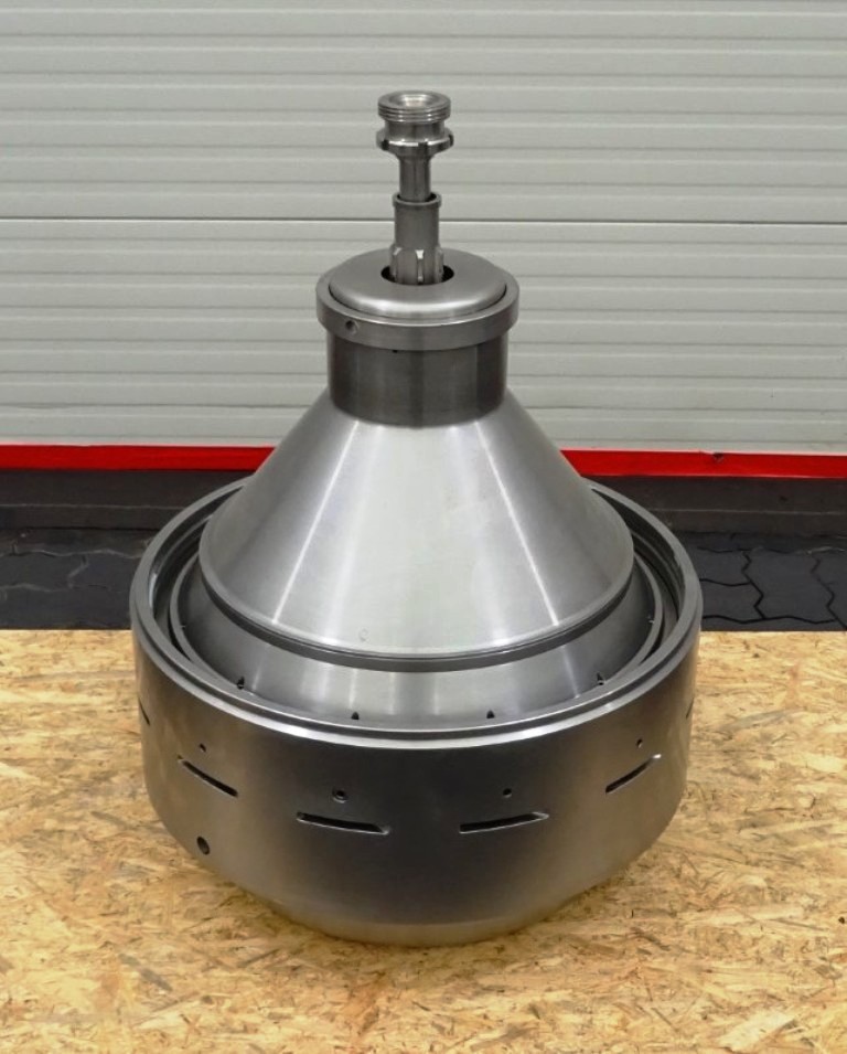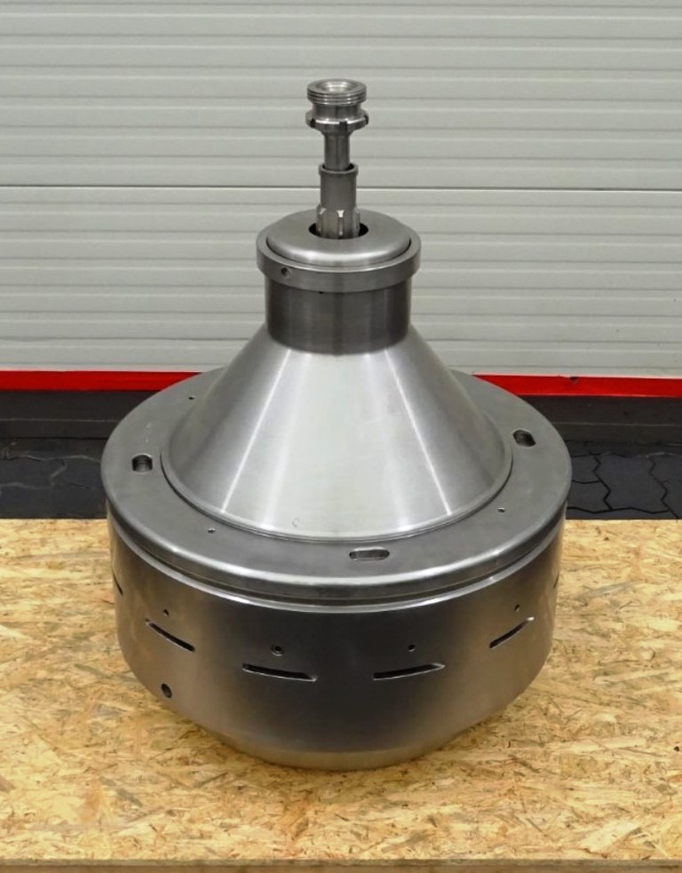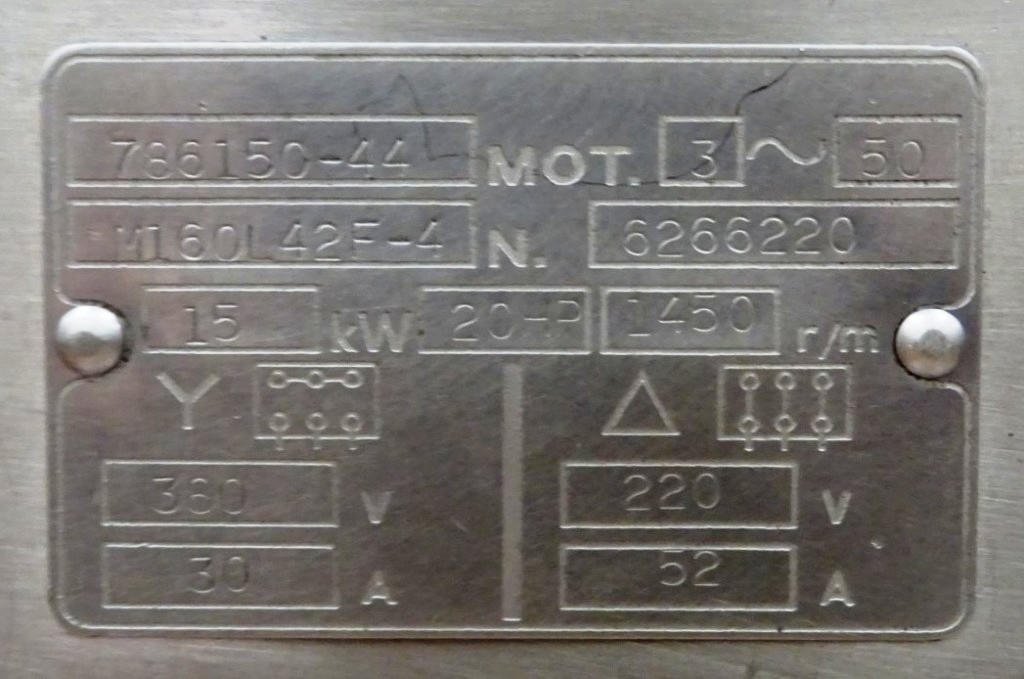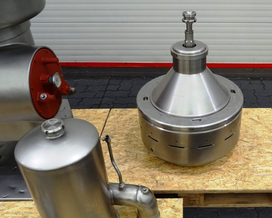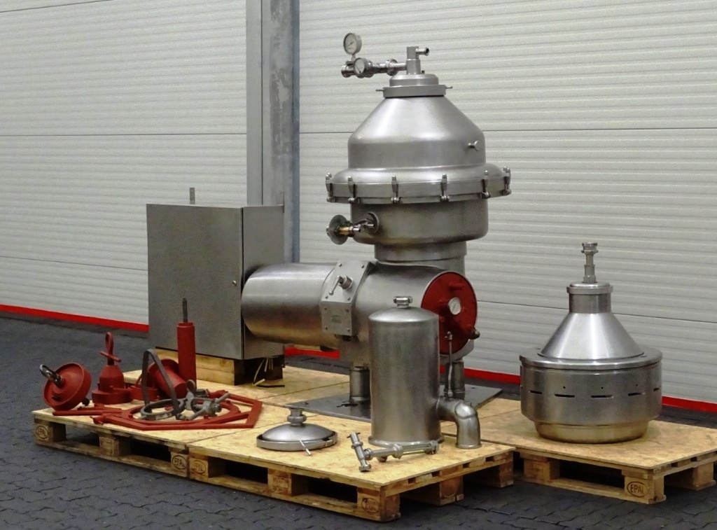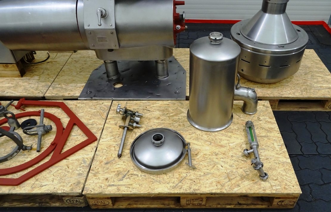 Max bowl speed 4450 RPM, rated @ 15,000 LPH on hot milk. 15 KW motor 380/3/50/1450 RPM with sludge cyclone, all inlet / outlet pipes, flow indicator, counter pressure valve, base plate and tools. Very good condition. Located in Europe.