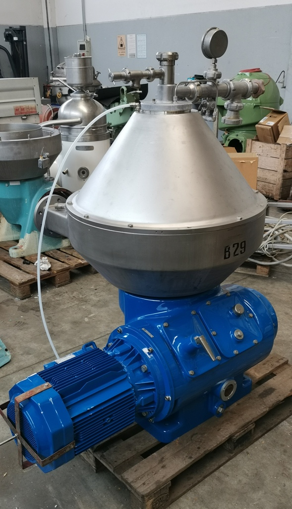 Max bowl speed 6240 RPM, rated @ 7500 LPH, both liquid phases discharged under pressure, 18.5 KW motor 380/3/50/1450 RPM, sludge tank and tools. No controls. Reconditioned. Located in Europe.