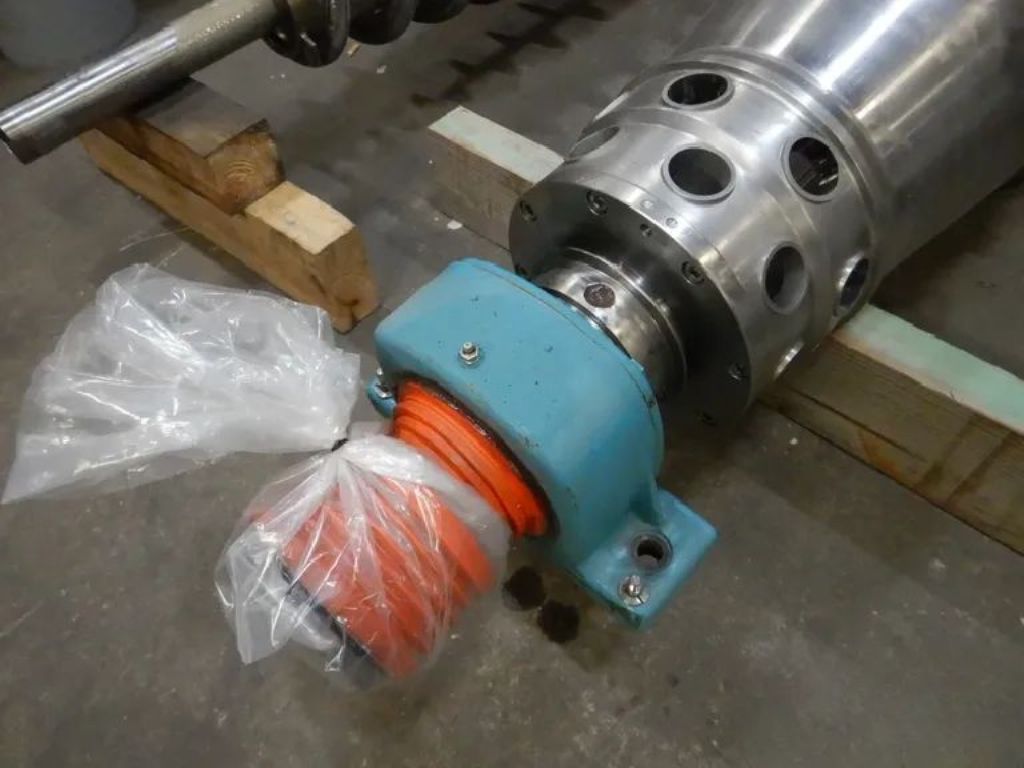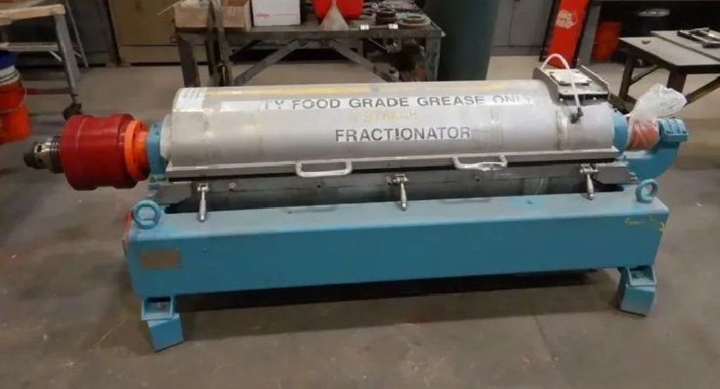 Max bowl speed 4000 RPM, 3158 x G, liquid discharged by gravity, 110mm hardsurfaced Esbjerg conveyor, 159:1 2.5 kNm gearbox. No motor, guards or feed tube. Prior use: Starch and sweeteners. 1977 vintage. Reconditioned and unused since.