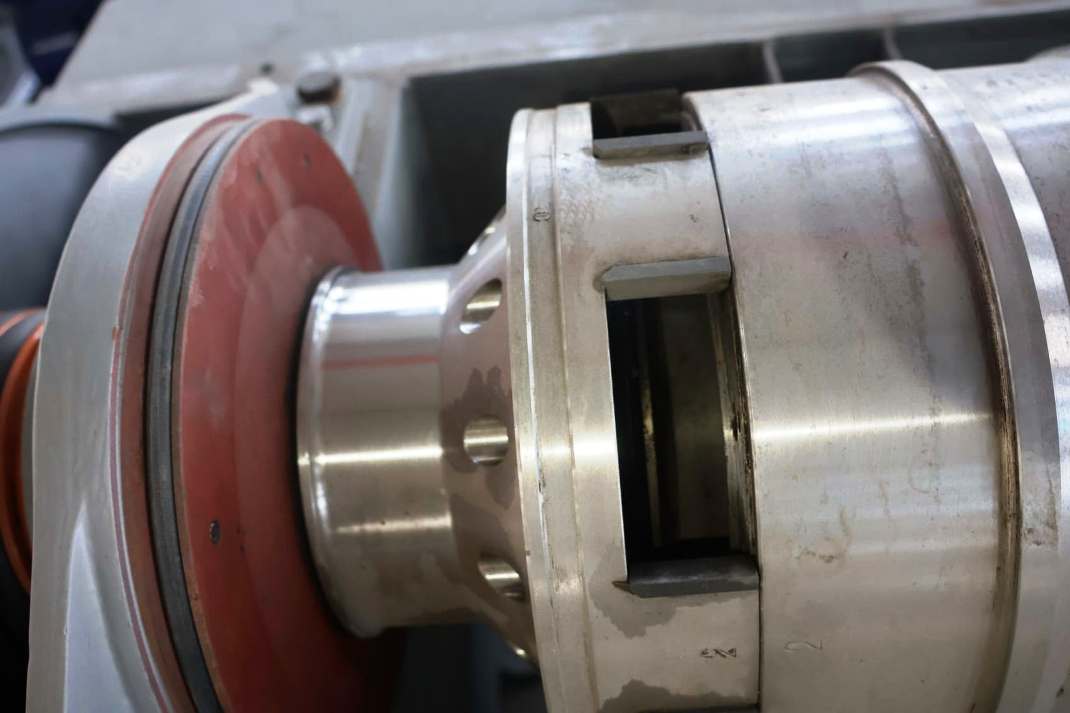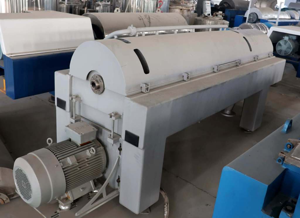 Max bowl speed 4200 RPM, 3482x G, 353 x 1460mm (13.9 x 57.5") bowl ID. 10 degree beach angle, 360 degree cake discharge, liquid discharged under pressure via paring disc thru skimmer tube, 125mm single lead harsurfaced conveyor, 22 KW motor 380/3/50/1460 RPM, 52:1 3.5 kNm DD gearbox, 5.5 KW backdrive, guards, CIP bar, feed tube, vibration switch/isolators and chutes, mounted on 4' stand. 2021 vintage. Excellent condition. Located in Africa.