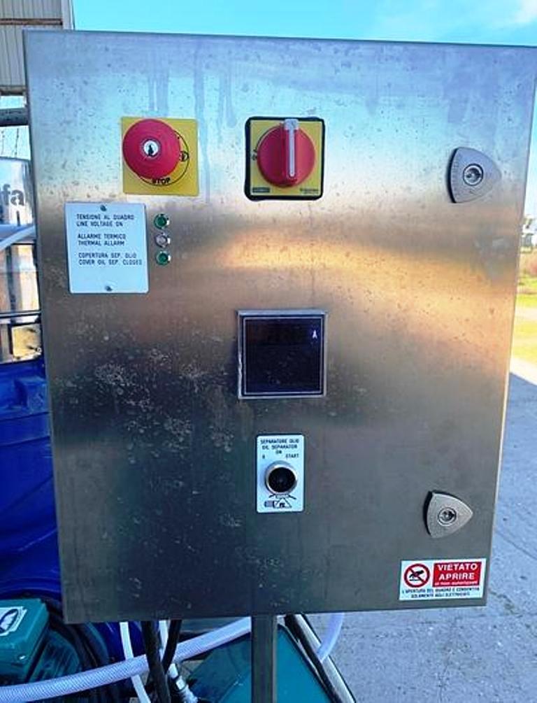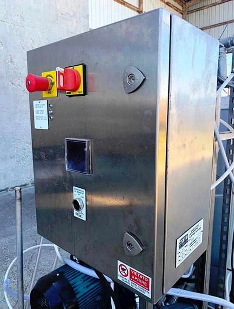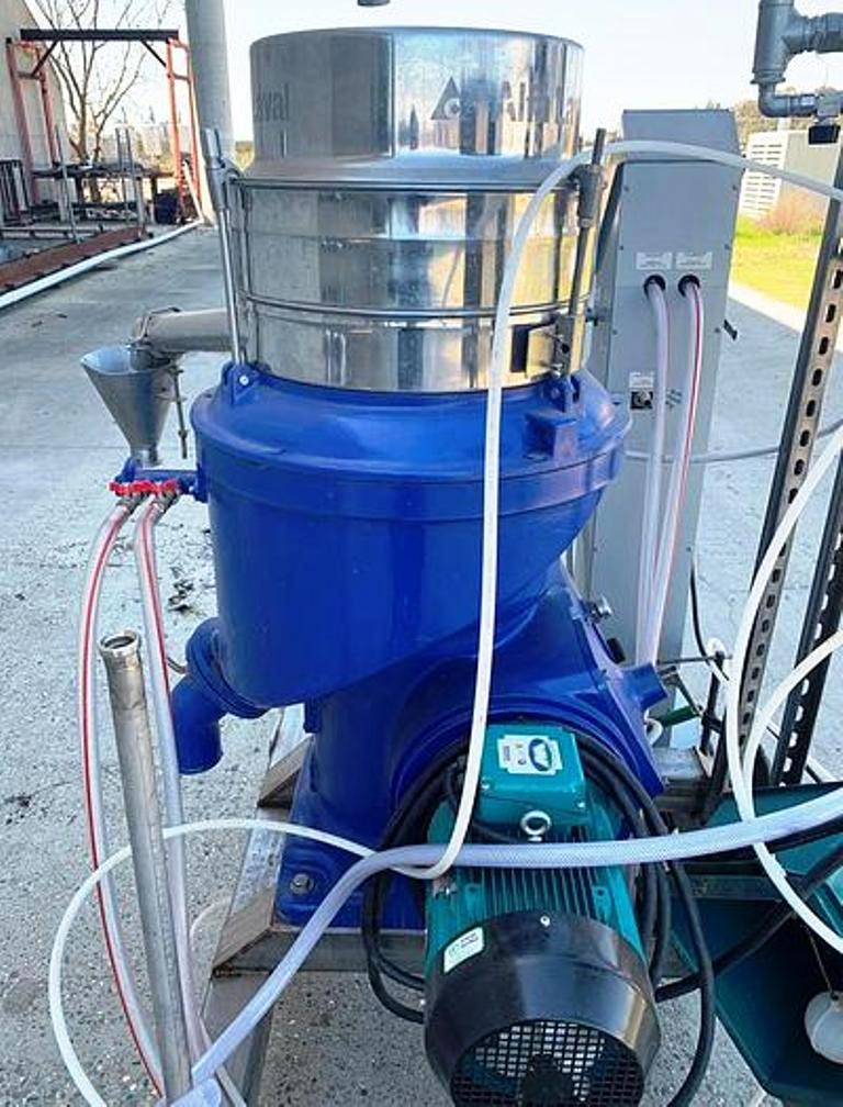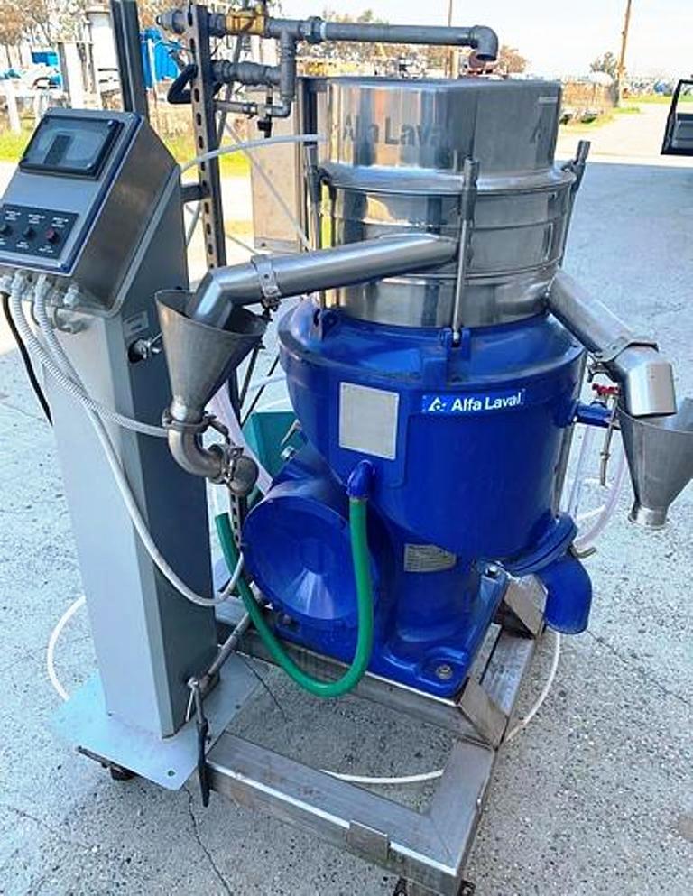 Max bowl speed 6400 RPM, 4.4 L sludge capacity, both liquid phases discharged by gravity, 7.5 HP motor 230/460/3/60/1760 RPM and control panel, mounted on a SS skid. 1998 vintage. Reconditioned in 2019 and only used for 10 hours on olive oil.