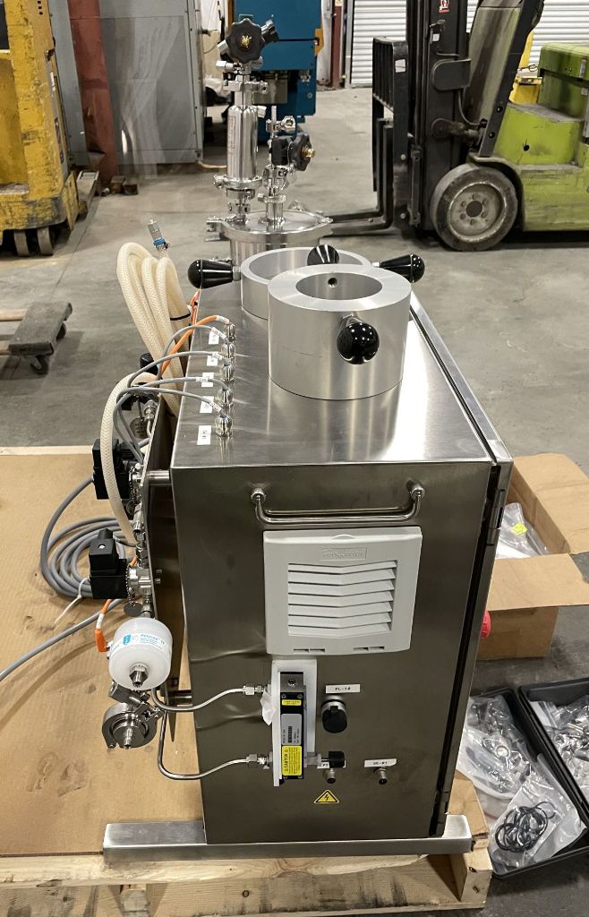 Max bowl speed 10,840 RPM, rated @ 240 LPH, 2-40C temp. 316L SS construction with titanium bowl assembly, 2 HP motor 115/1/60/13.9A, NEMA 4X control panel, jacket rated @ full vacuum 100 PSI @ -20 - 300 degrees with spare pare and manuals. 2023 vintage. Excellent condition.