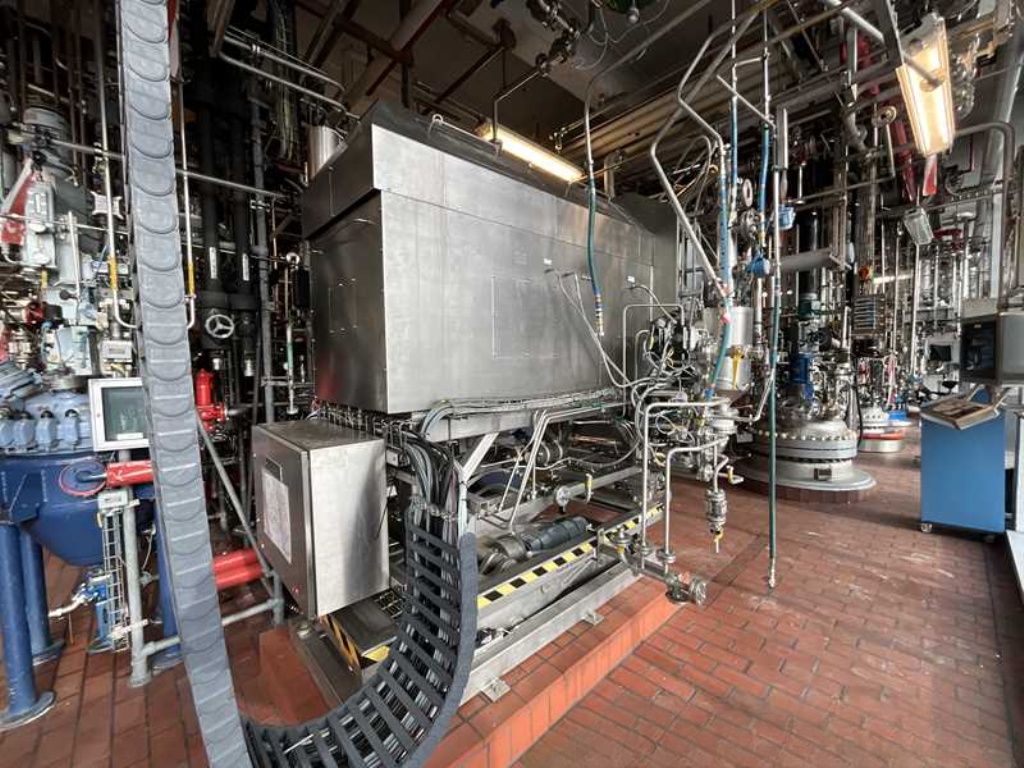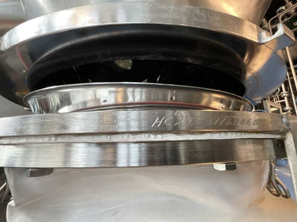 The Heinkel HF 600.1 Inverting Filter centrifuge, 316L SS. is engineered for high-efficiency separation processes, making it an ideal choice for various industrial applications. With a maximum bowl speed of 1940 RPM and a gravitational force of 1255 x G, this centrifuge excels in delivering rapid and thorough separation of solids from liquids. The 0.45 square meter filter area allows for effective filtration, accommodating a maximum volume of 52 liters and a load capacity of up to 65 kg. This robust design ensures optimal performance even under demanding operational conditions, making it suitable for industries such as pharmaceuticals, food processing, and chemical manufacturing.