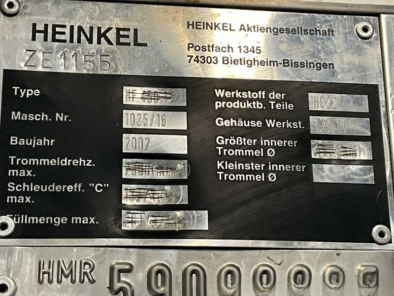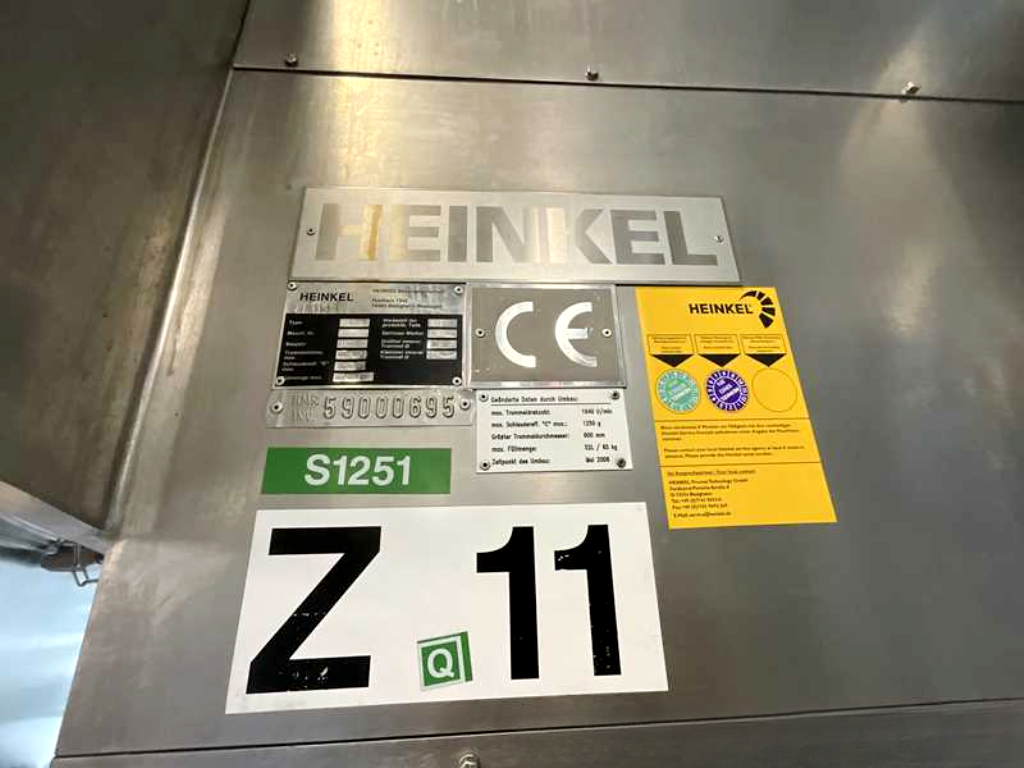 Constructed from high-quality 316L stainless steel, the Heinkel HF 600.1 is designed for durability and resistance to corrosion, making it suitable for use in harsh environments. The unit is mounted on a sturdy stainless steel stand and skid, ensuring stability during operation. This centrifuge, originally manufactured in 2002 and converted in 2006 from a 450mm to a 600mm drum, is in excellent condition and ready for immediate deployment. Located in Europe, it presents a valuable opportunity for businesses seeking reliable and efficient separation technology.