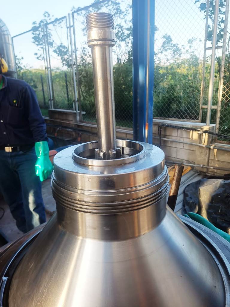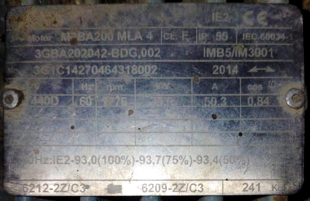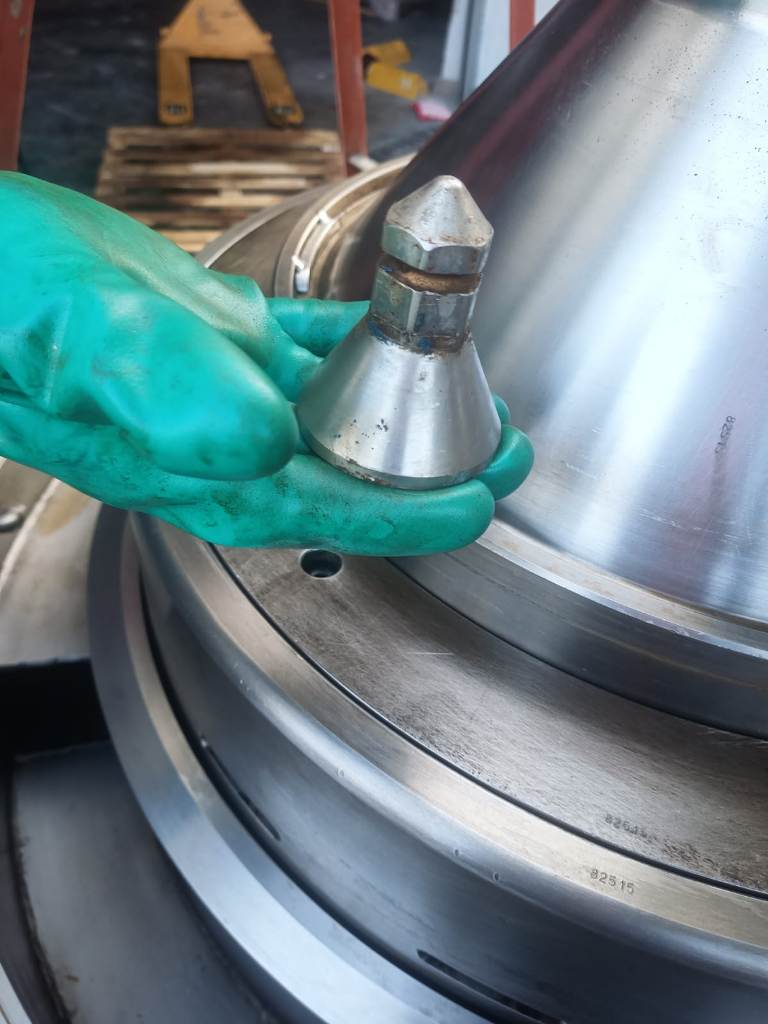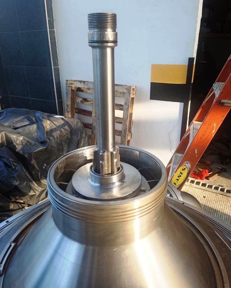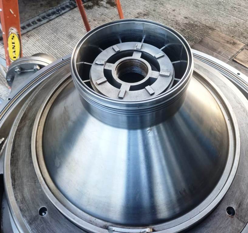 Max bowl speed 5300 RPM, rated @ 450-500 TPD, 40 L bowl volume, 15 L solids capacity, both liquid phases discharged under pressure. 30 KW motor 440/3/60/1776 RPM, tools, manual and drawings. Prior use: crude palm oil degumming and neutralization. 2015 vintage. Very good condition. Equivalent to GEA Westfalia RSE 170-01-076. Located in South America.