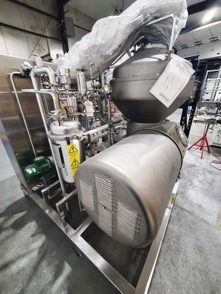 The NEW: Alfa-Laval Culturefuge 200 biotech clarifier skid, 316L SS. is engineered for high-performance separation in the biotechnology and pharmaceutical industries. With a maximum bowl speed of 7200 RPM and a centrifugal force of 11,900 x G, this clarifier is capable of processing up to 5000 liters per hour (LPH), making it an ideal solution for large-scale applications. The 15-liter bowl volume ensures efficient separation while maintaining optimal product integrity. Its hermetic design, coupled with a jacketed bowl, allows for steam sterilization, ensuring that the equipment meets stringent hygiene standards required in sensitive bioprocessing environments. The liquid phase is discharged under pressure, facilitating seamless integration into existing processing lines and enhancing overall operational efficiency.