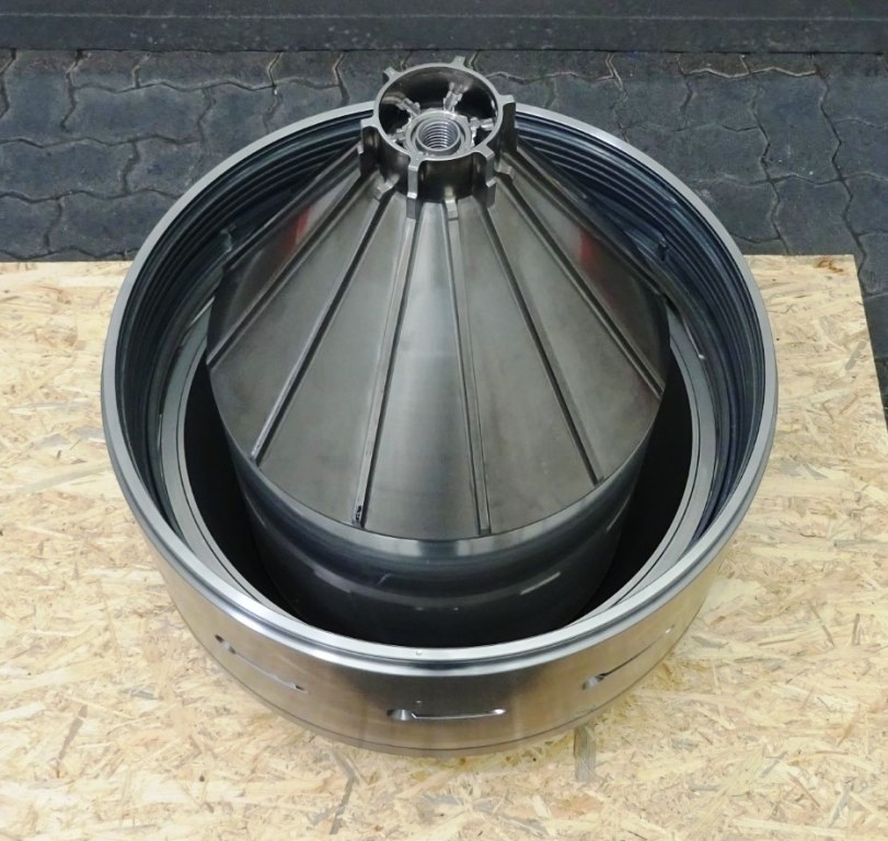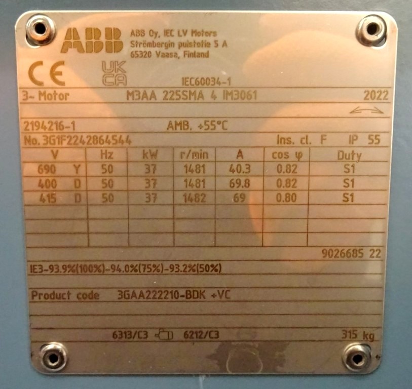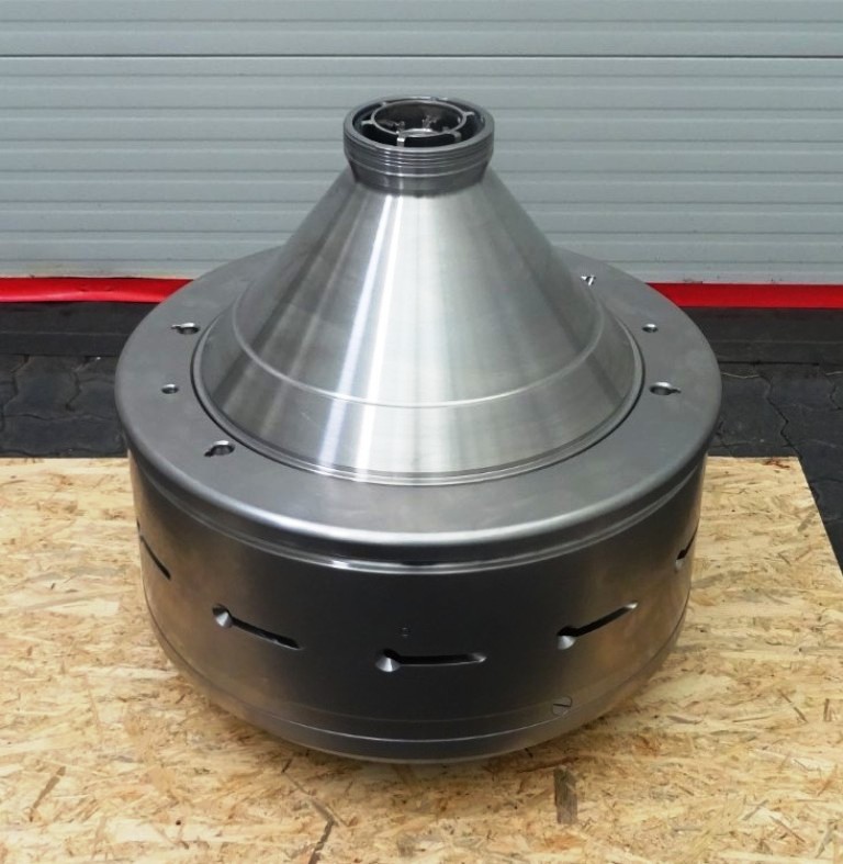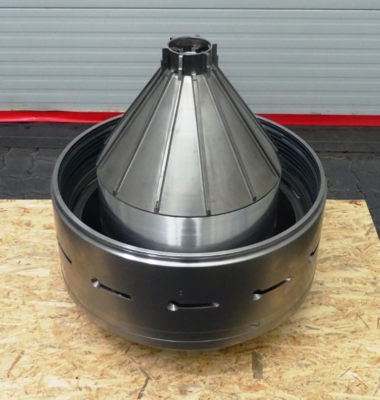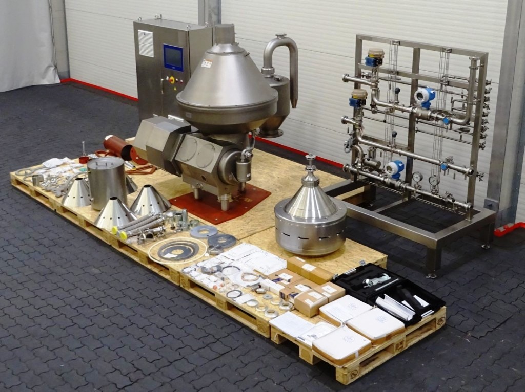 Max bowl speed 5650 RPM, rated @ 6000 LPH, bowl volume 34 L, both liquid phases discharged under pressure via adjustable Centrizoom paring disc. 37 KW motor 400/690/3/50/1481 RPM, sludge cyclone, water harness, base frame, all valves, gauges and piping, tools, spare parts, manuals, standard process liquid unit mounted on a SS skid and PLC control panel with VFD and touch screen HMI. 2023 vintage. Never used. Located in Europe.