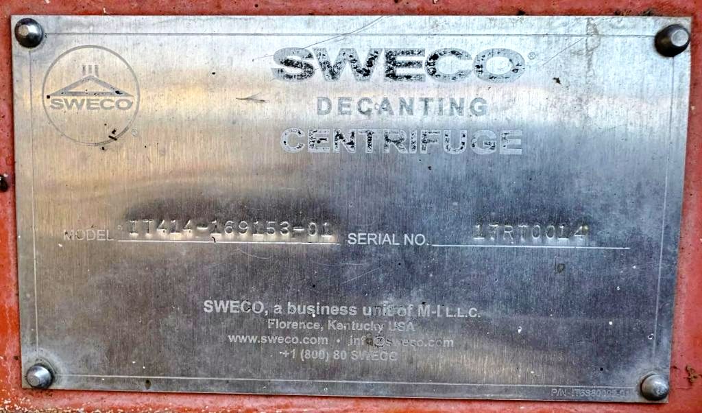 The Sweco 414 XP oilfield decanter centrifuge, 316SS. is engineered to deliver high-efficiency separation in demanding oilfield applications. With a maximum bowl speed of 3300 RPM and the capability to generate forces up to 2150 G's, this centrifuge is designed to effectively separate solids from liquids, ensuring optimal performance in various drilling and production processes. The 14" x 34" bowl ID provides ample capacity for handling substantial volumes of material, making it an ideal choice for operators seeking reliable and robust equipment that can withstand the rigors of oilfield operations. Its single lead STC-tiled conveyor, powered by a 25 HP XP motor, ensures efficient material transport while minimizing wear and tear, thus extending the lifespan of the equipment.