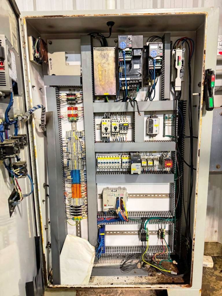 Max bowl speed 3600 RPM, 2000 x G, rated @ 20 GPM. 2 gal solids holding capacity, 5 HP motor 230/460/3/60/1750 RPM, unitized on stand with holding tank, pumps and PLC control panel. Very good condition. A maximized liquid flow path through the centrifuge bowl increases liquid retention time, and the patented Centri-Lock™ plow-clutch and a three-bladed plow assembly with an efficiency ring minimizes liquid turbulence. Increased retention time combined with minimized liquid turbulence creates superior separating efficiency. After the solids material has been separated, a strong gear-driven plowing mechanism will remove even the toughest cake.