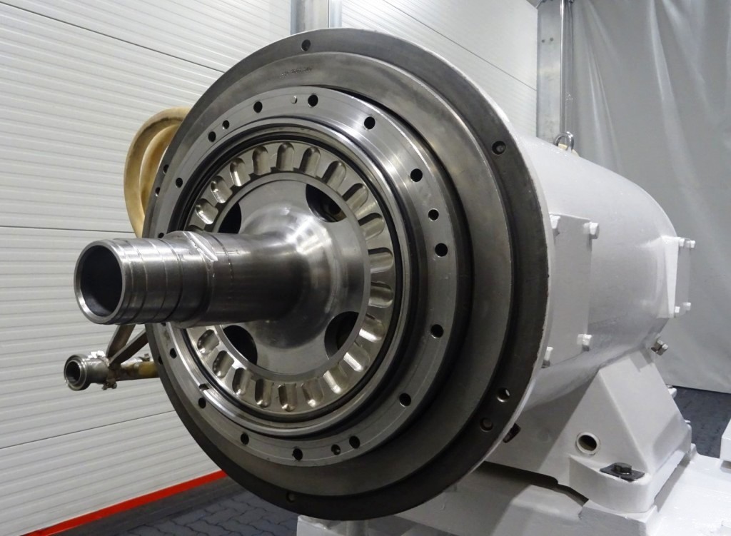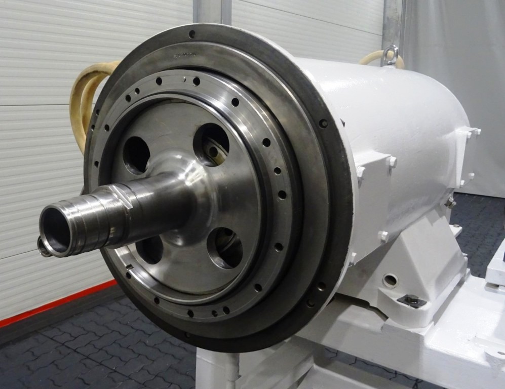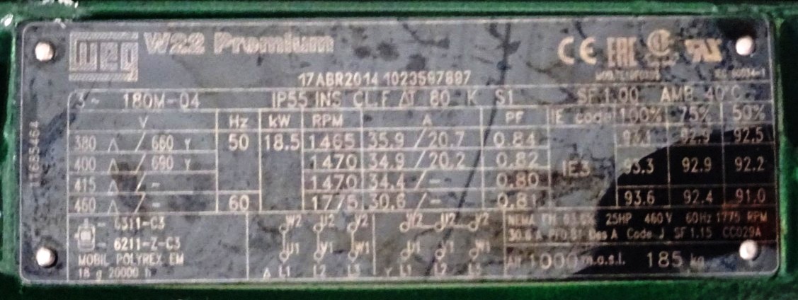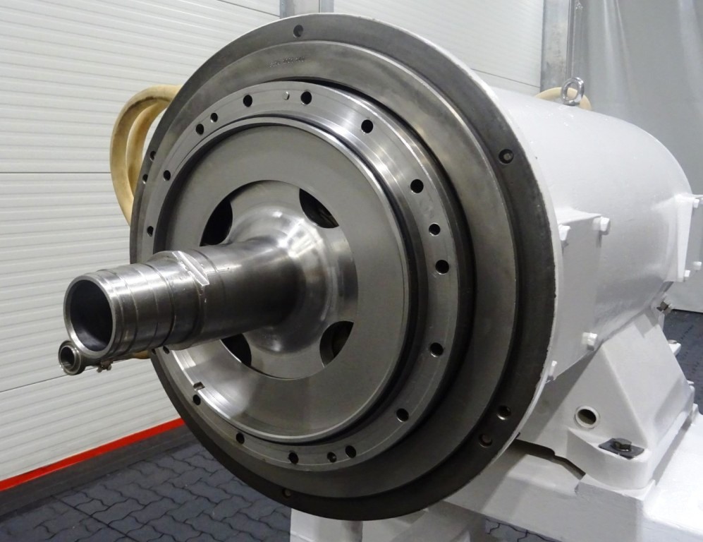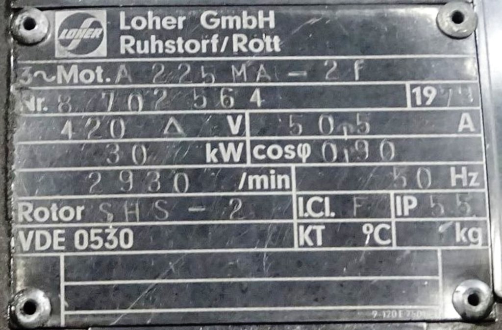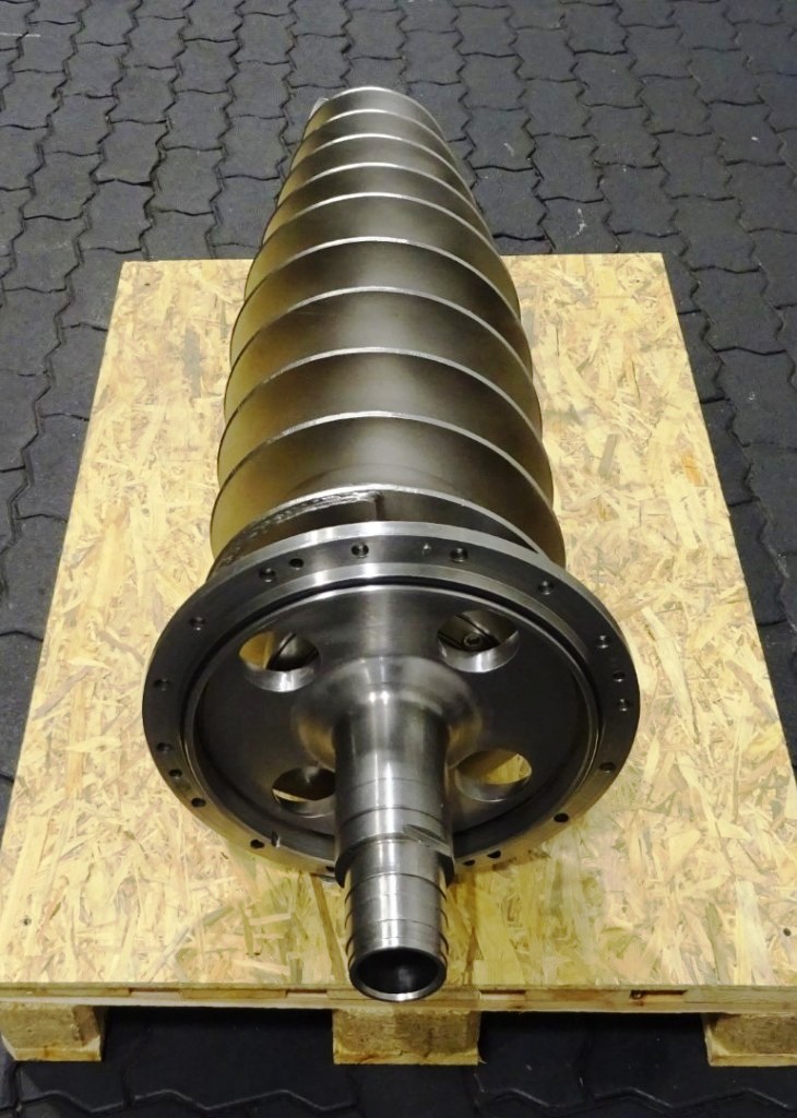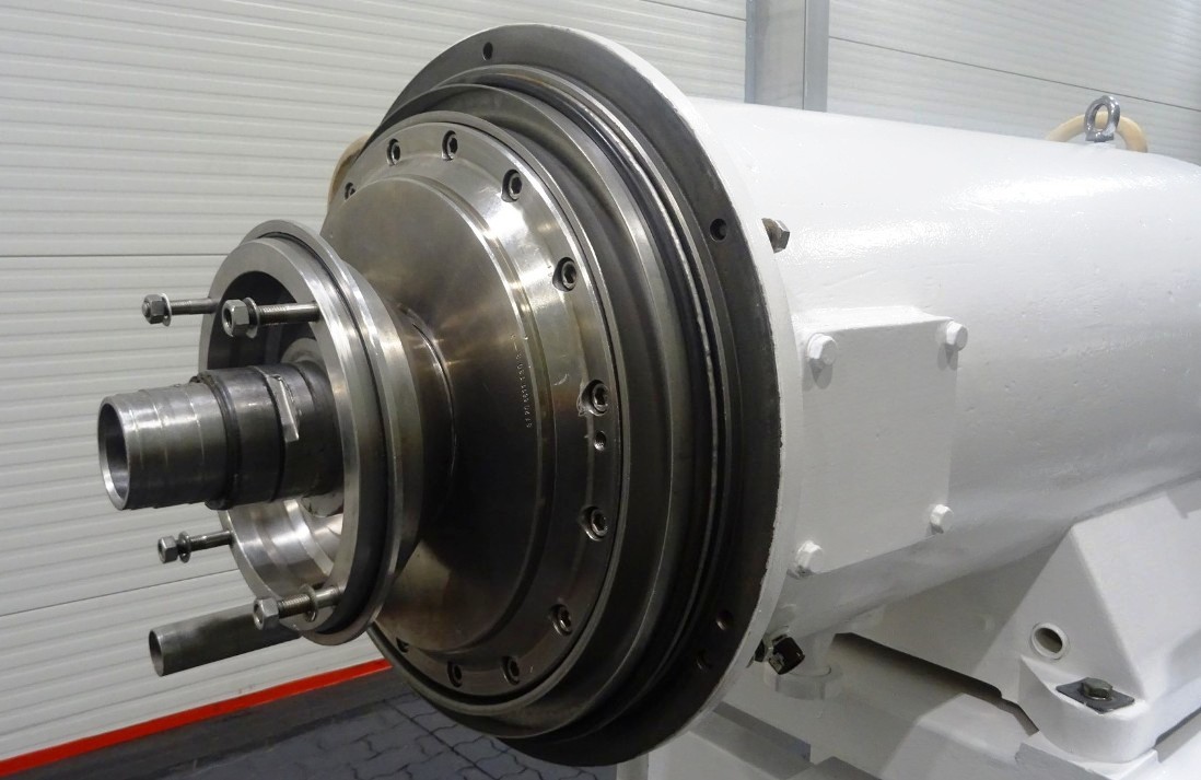 Max bowl speed 4000 RPM, rated @ 55 GPM, pressure discharge design, 8 degree contour bowl. 30 KW motor 420/3/50/2930 RPM, 18.5 KW Viscotherm hydraulic backdrive system, feed tube, guards and chutes, mounted on a stand. Prior use: Casein. 1981 vintage. Excellent condition.