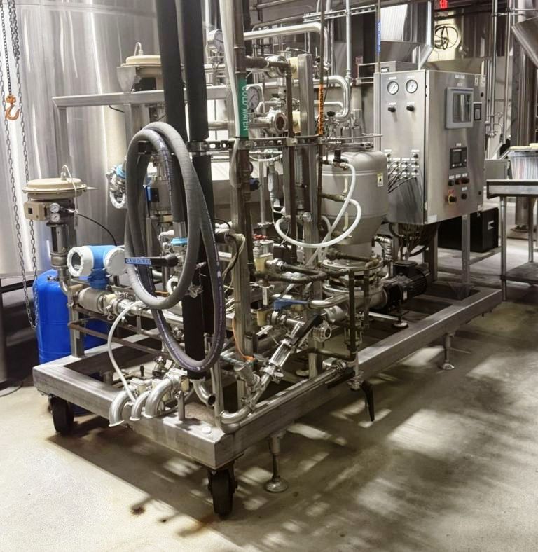 The Westfalia GSC 60-06-077 Hydrostop clarifier skid, 316SS. is not only designed for performance but also for ease of use and maintenance. The integrated Allen Bradley PLC control panel, equipped with a PanelView 1000 Color Touch Screen HMI, allows operators to monitor and control the system with precision. This user-friendly interface simplifies the management of the clarifier's operations, enabling real-time adjustments and diagnostics to be performed effortlessly. Additionally, the unitized skid design facilitates easy installation and relocation, making it a practical choice for facilities that may require equipment to be moved or reconfigured frequently. Having previously been utilized in a brewery setting, this clarifier skid has proven its reliability and efficiency in a demanding environment, and its excellent condition ensures that it is ready for immediate deployment in your operations.