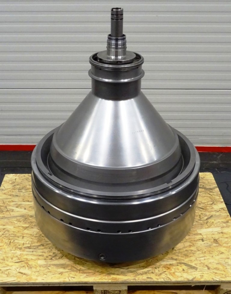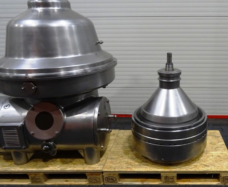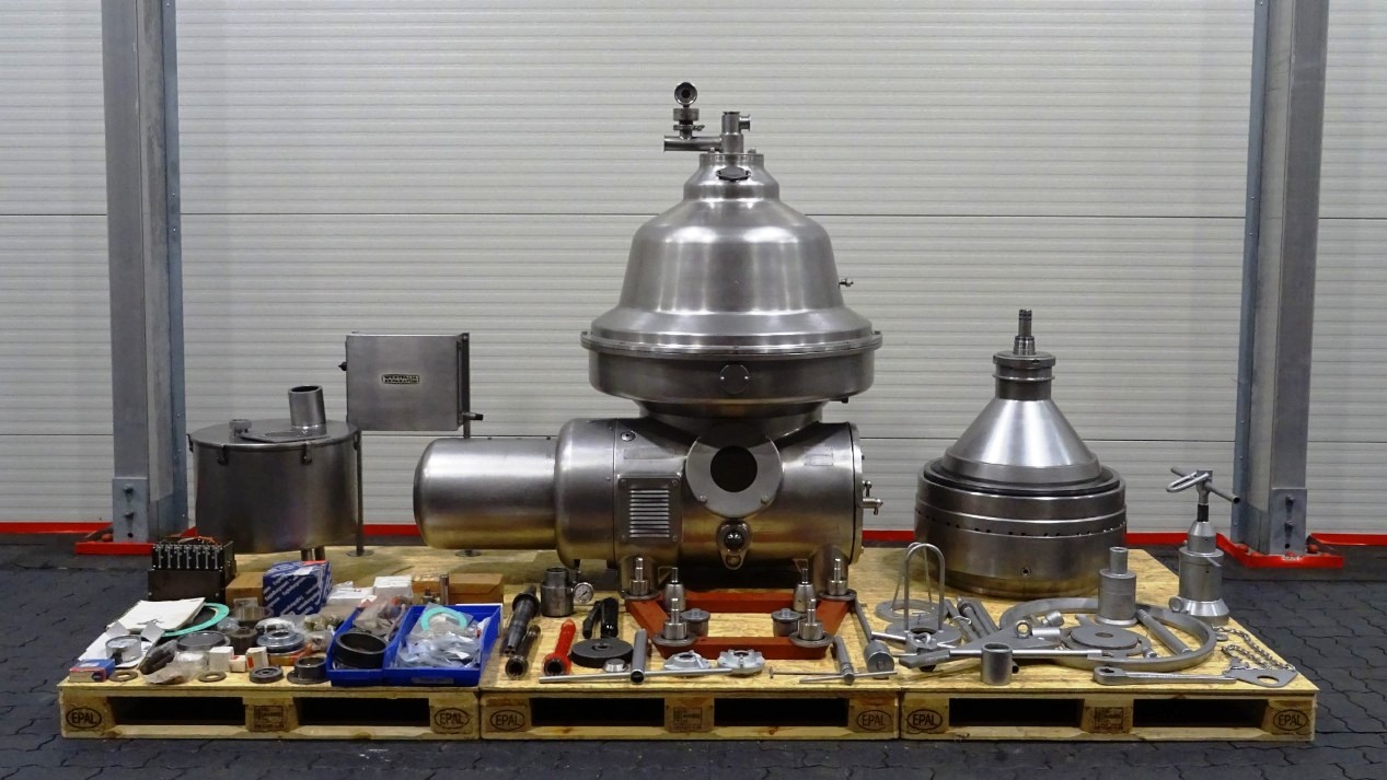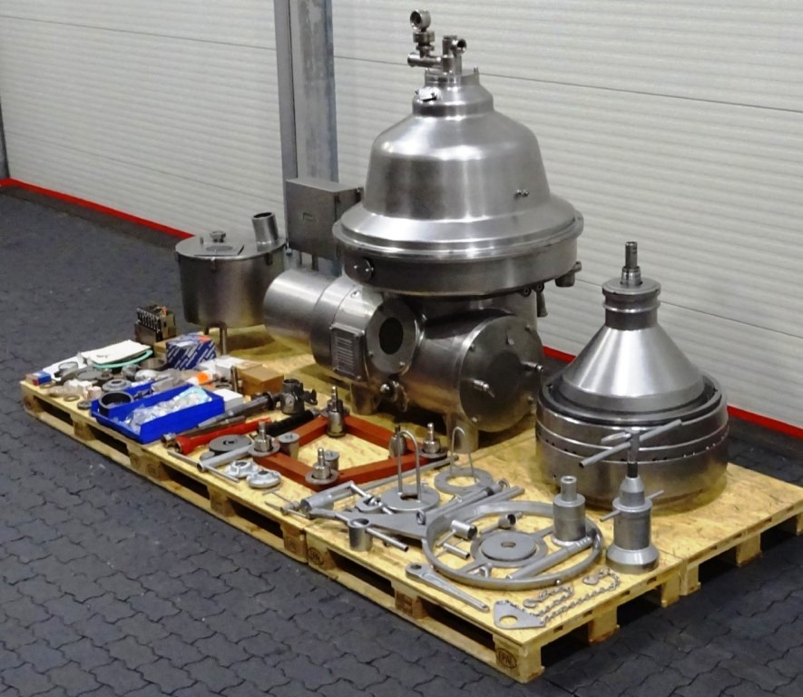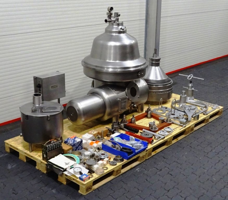 Max bowl speed 4500 RPM, rated @ 25,000 LPH separation. 37 KW motor 460/3/60/1775 RPM, counter pressure valve on inlet, manometer, manual flow regulation valve and flow indicator for cream, sludge tank, base plate, intel/outlet pipes, tools and spare parts. 1981 vintage. Excellent condition. Located in Europe.