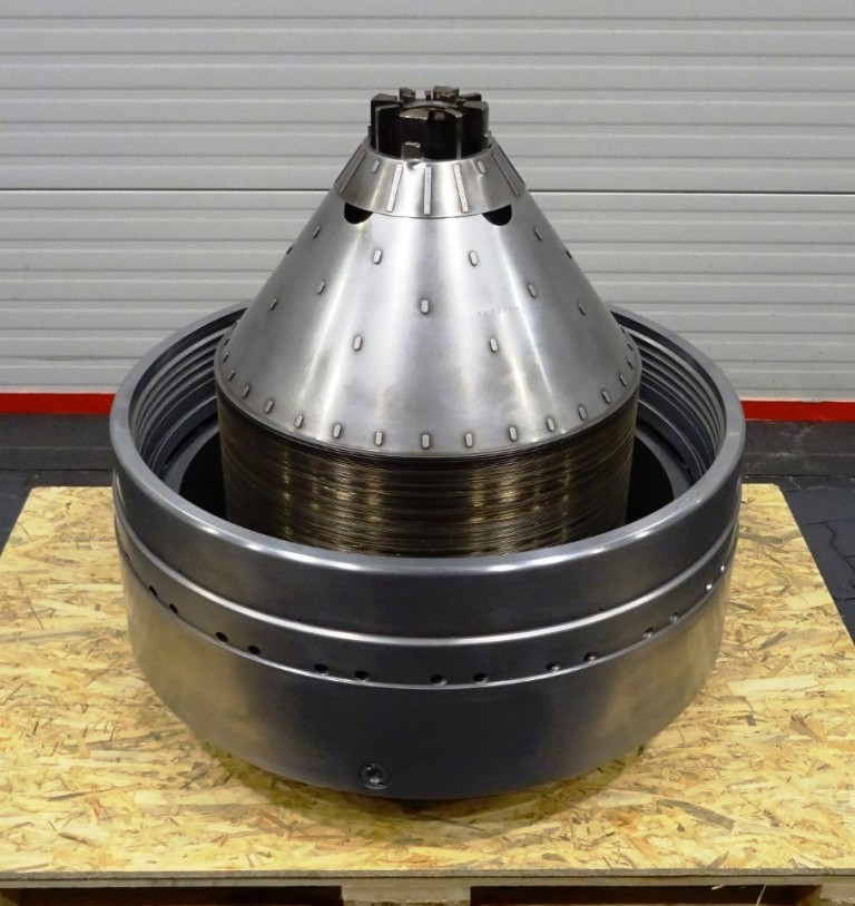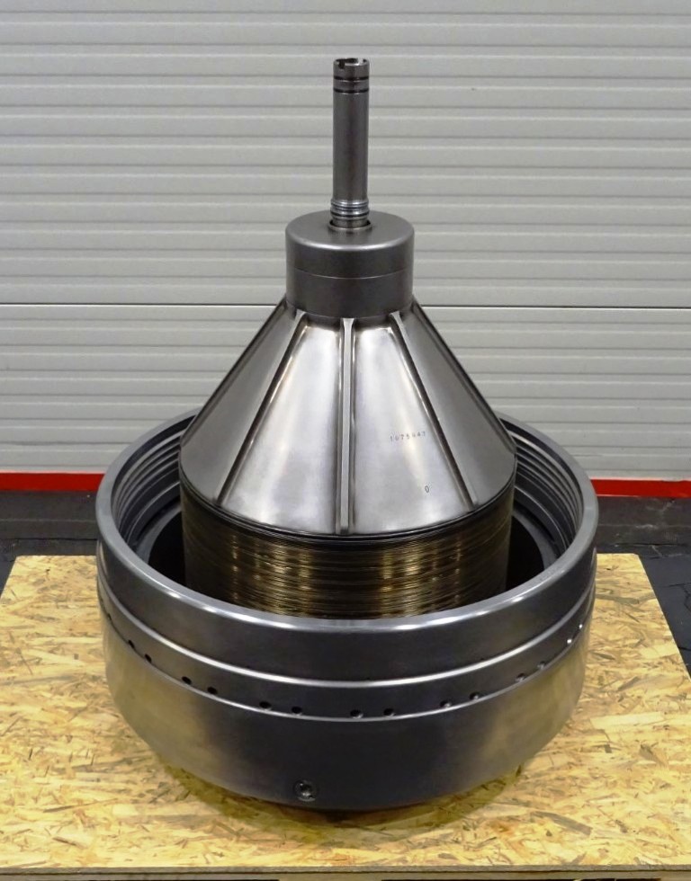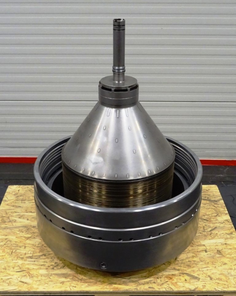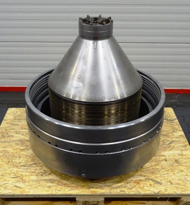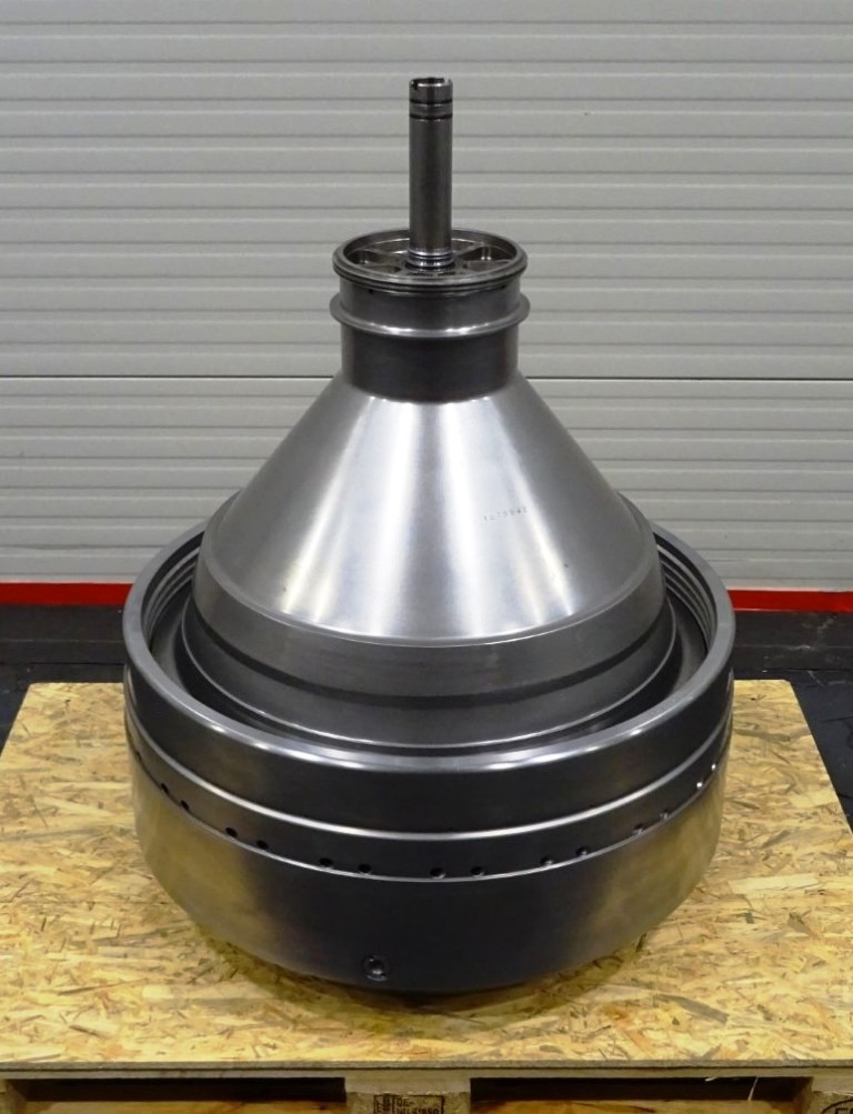 Max bowl speed 4500 RPM, rated @ 25,000 LPH separation. 37 KW motor 460/3/60/1775 RPM, counter pressure valve on inlet, manometer, manual flow regulation valve and flow indicator for cream, sludge tank, base plate, intel/outlet pipes, tools and spare parts. 1981 vintage. Excellent condition. Located in Europe.