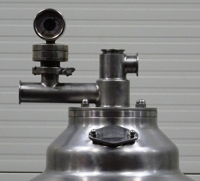 The Westfalia MSB 200-01-076 milk separator, 316SS. is engineered for high-efficiency milk processing, making it an invaluable asset for dairy operations looking to optimize their production capabilities. With a maximum bowl speed of 4500 RPM, this separator is capable of handling a rated separation capacity of 25,000 liters per hour (LPH). This impressive throughput is complemented by a robust 37 KW motor operating at 460 volts, 3-phase, 60 Hz, and 1775 RPM, ensuring reliable and consistent performance even during peak operational demands. The inclusion of a counter pressure valve on the inlet allows for precise control over the flow of milk entering the separator, while the integrated manometer provides real-time pressure readings, enabling operators to monitor system performance effectively.