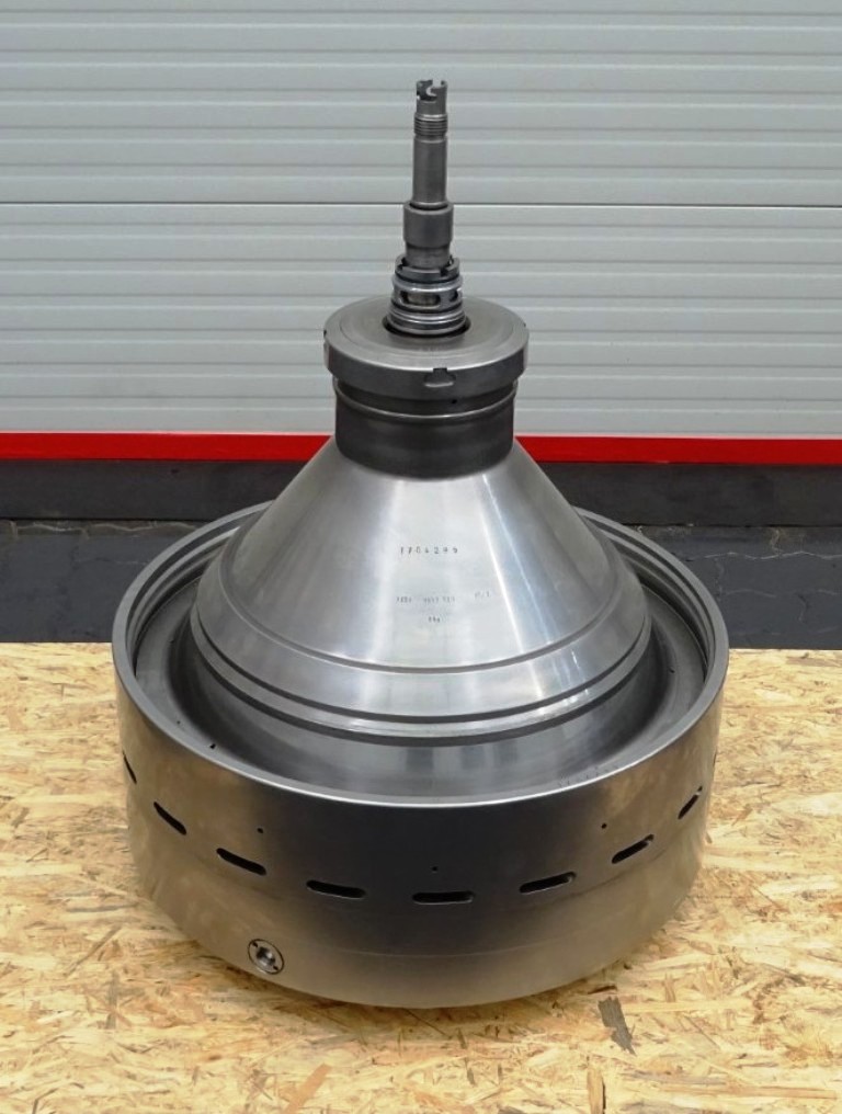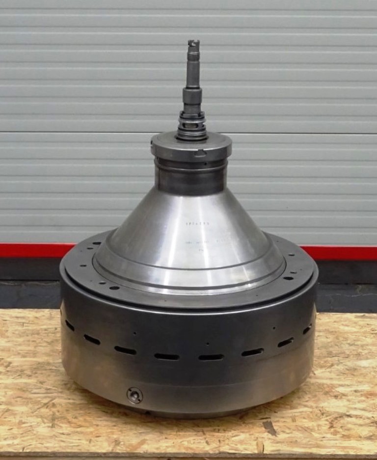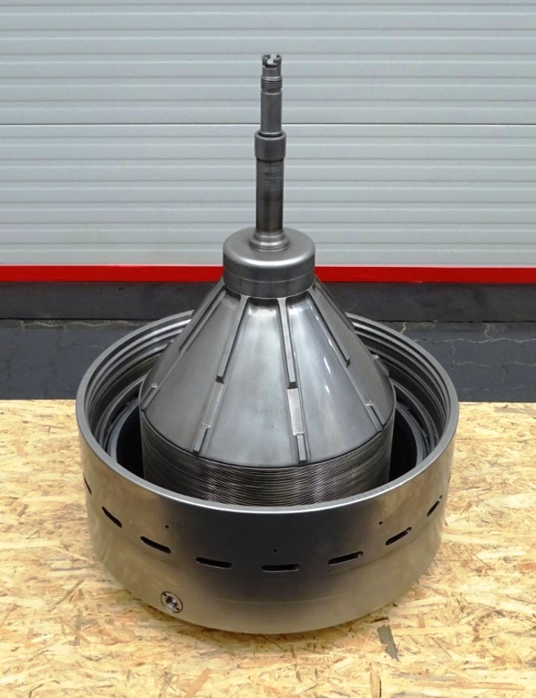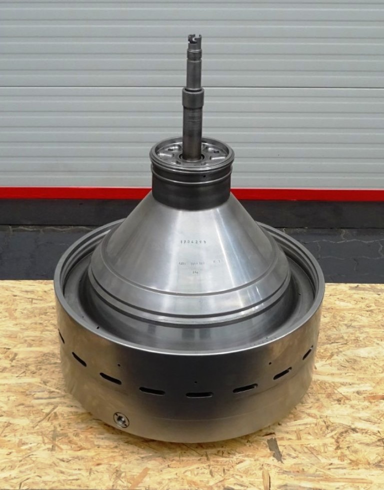 Max bowl speed 5920 RPM, rated @ 15,000 LPH. Special design with hermetic cream outlet (no pump) for cold skimming, therefore the cream is discharged without damaging the fat globules, even at low temperatures. 26 KW motor 380/3/60/1750 RPM, water valves, constant pressure valve 3 bar, monometer on outlet, base frame and tools. 1992 vintage. Excellent condition. Located in Europe.