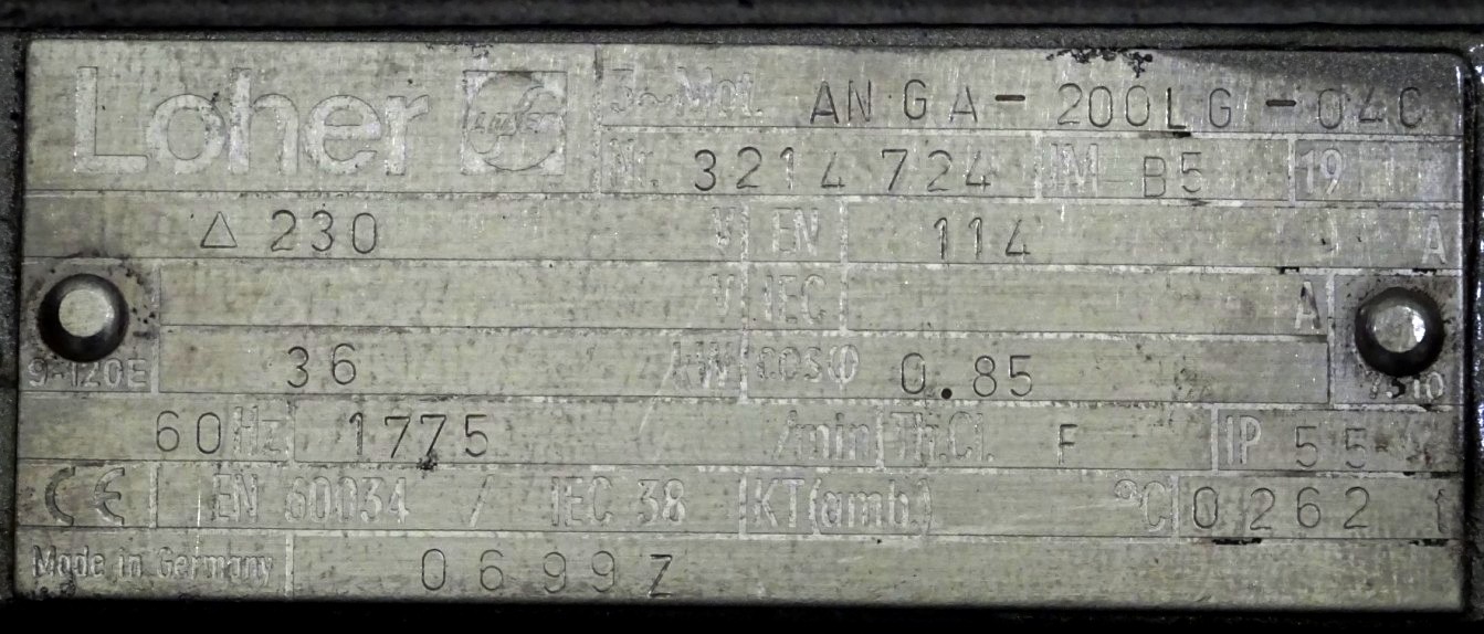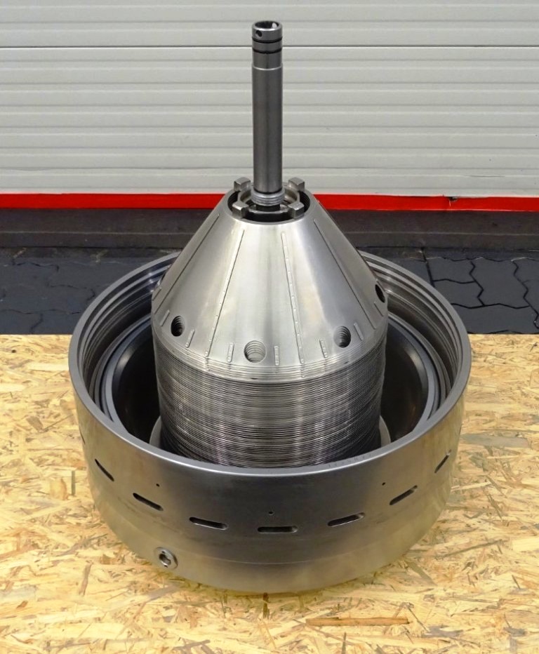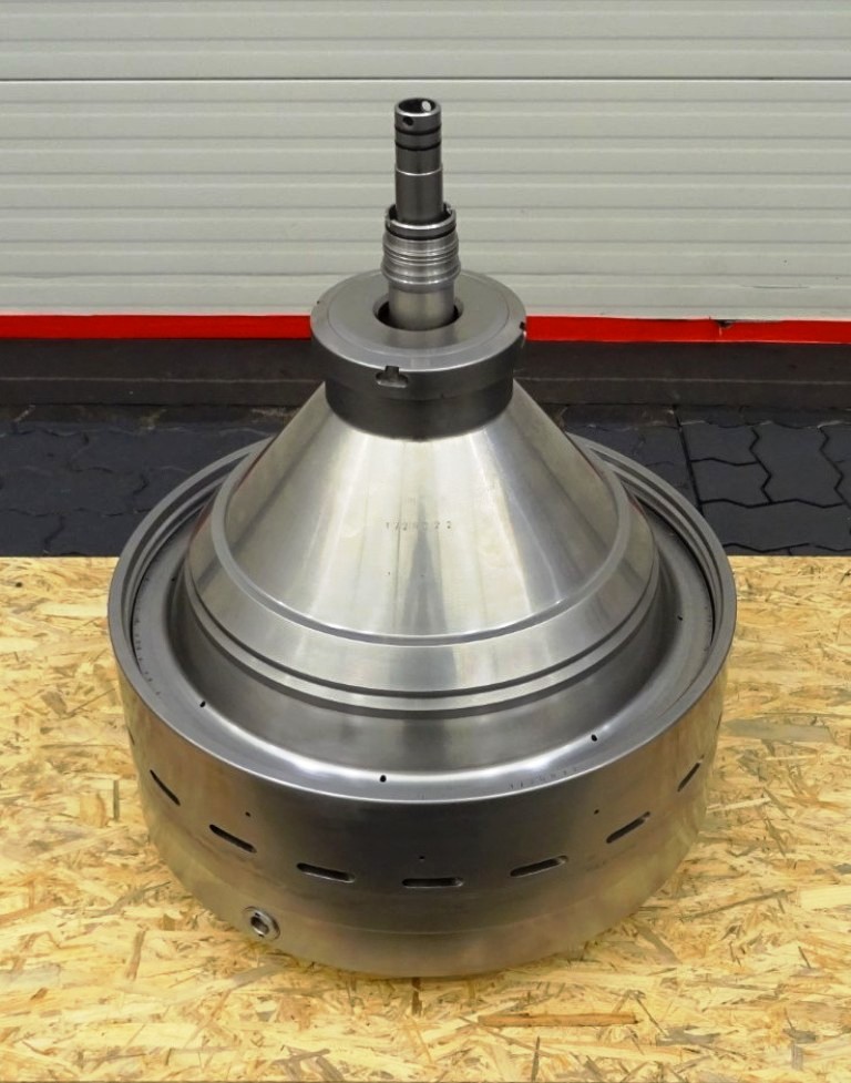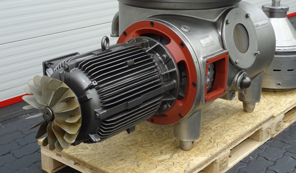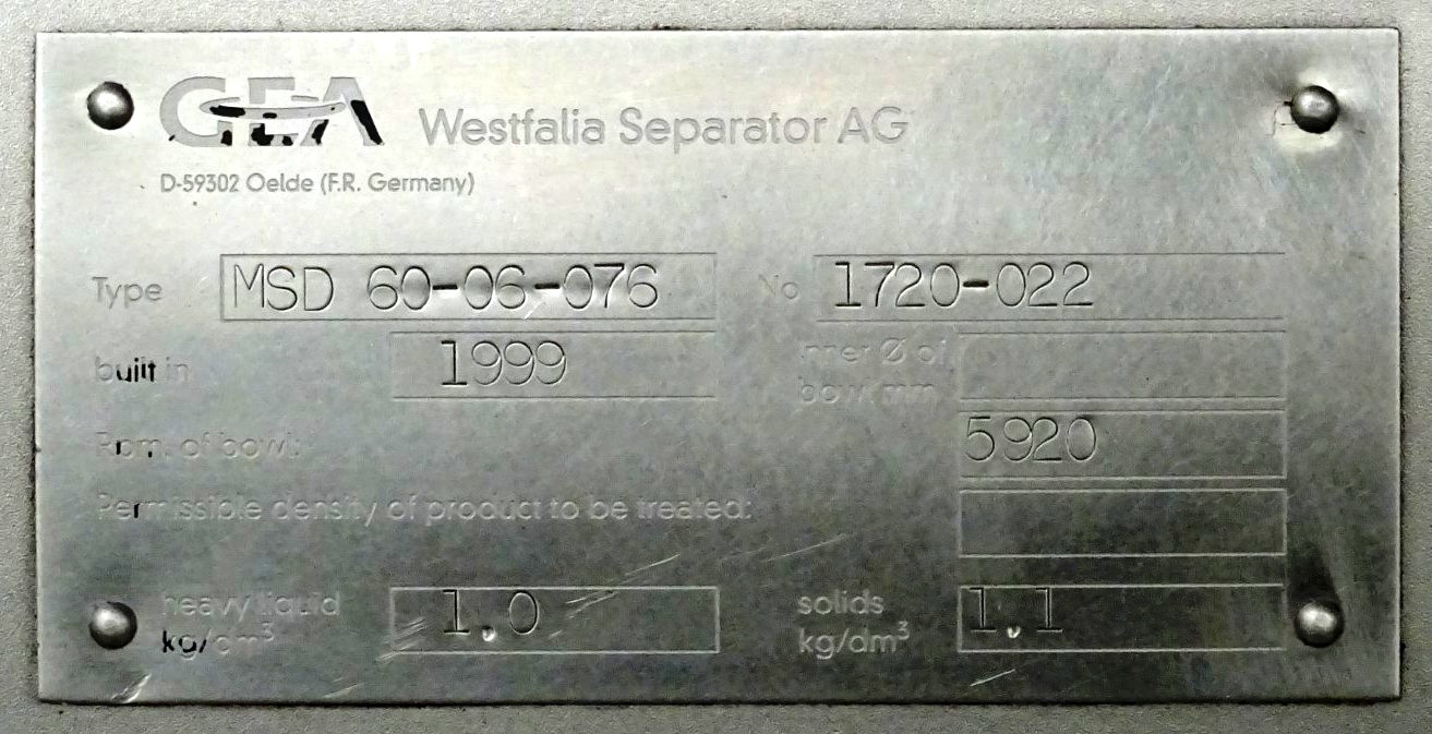 Max bowl speed 5920 RPM, rated @ 30,000 LPH, 68,000 PPH. 36 KW motor 230/3/60/1775 RPM with cover, base plate and tools. No controls. 1999 vintage. Very good condition. Located in Europe.