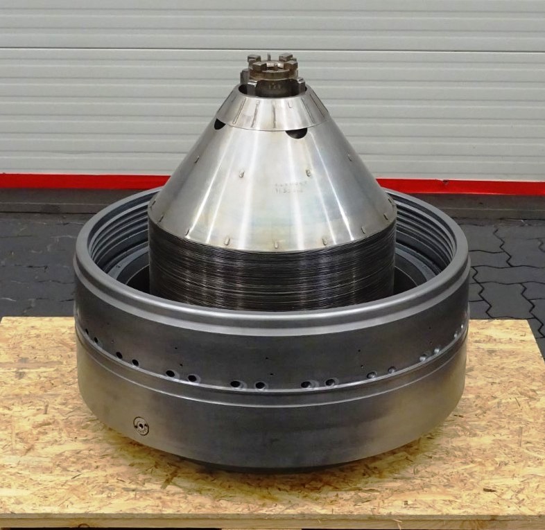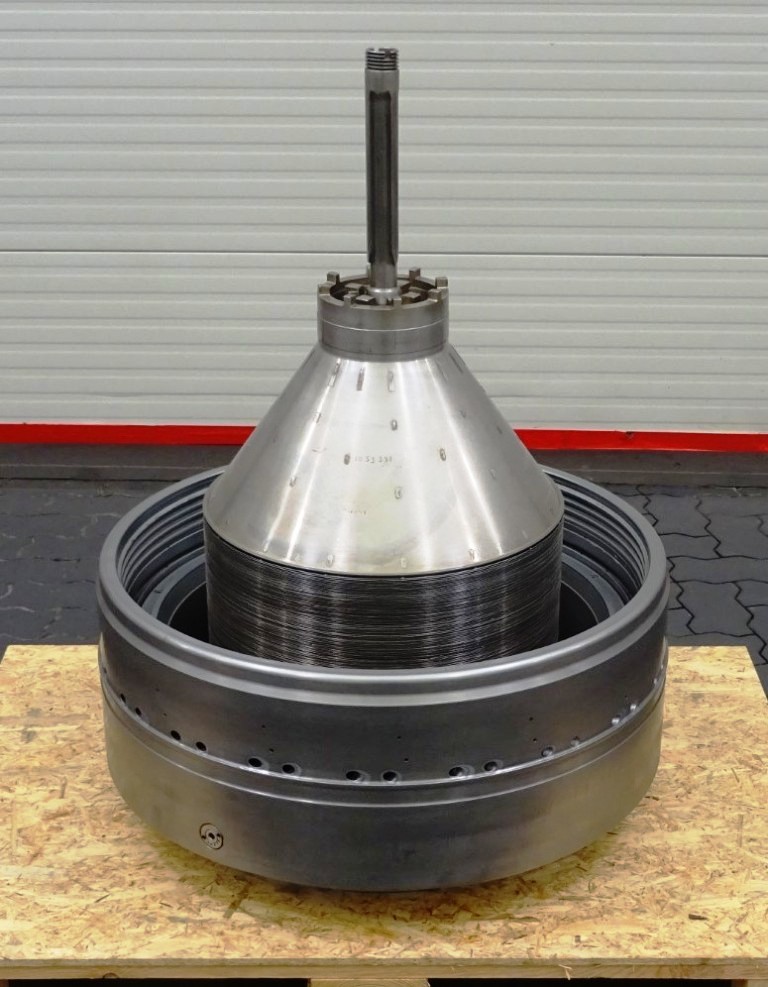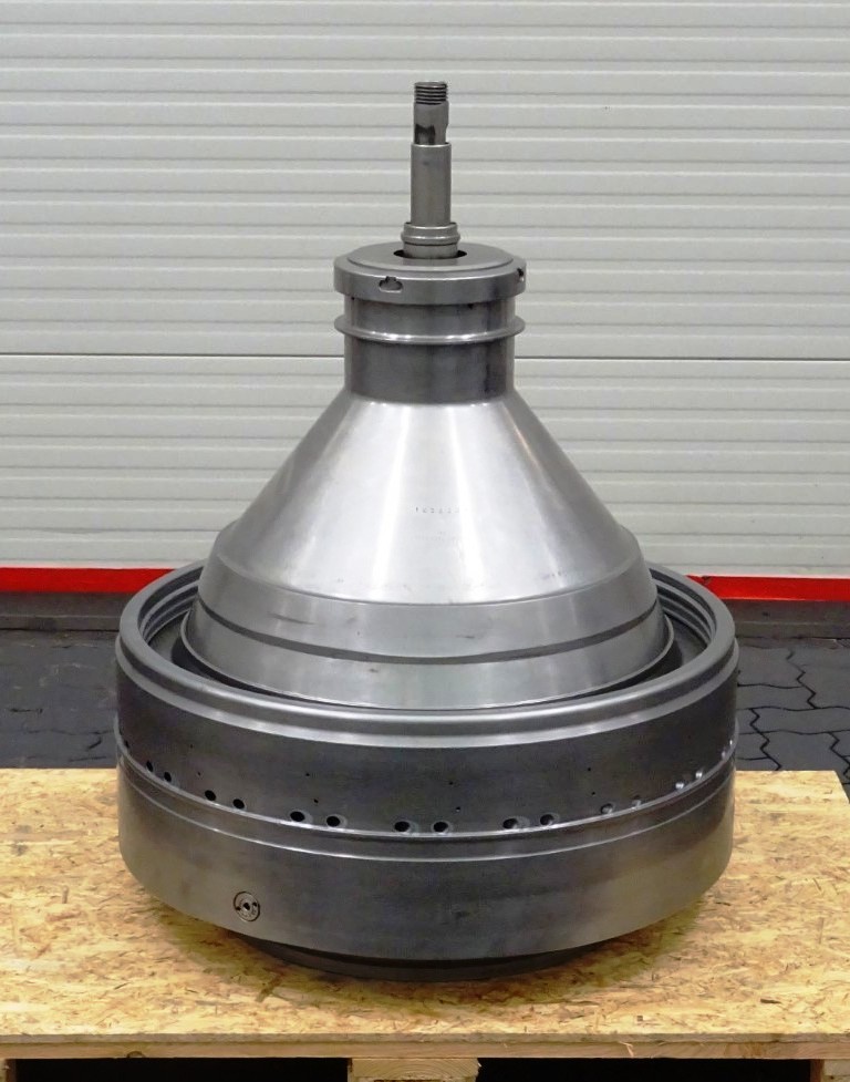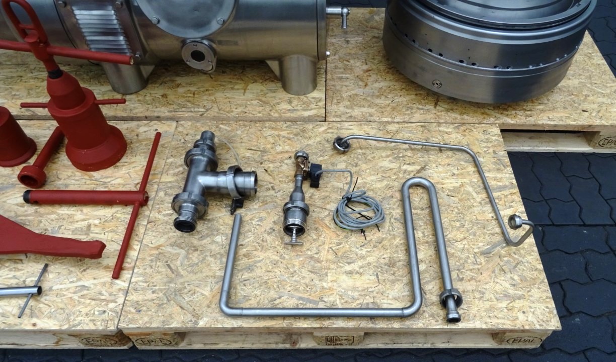 Max bowl speed 4700 RPM, rated @ 22,000 LPH on milk or whey. 30 KW motor 380/3/50/1470 RPM, sludge tank, water valves, base plate, flow meter and inlet/outlet pipes, tools and controls. 1974 vintage. Very good condition. Located in Europe.