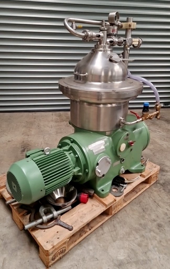 Max bowl speed 7570 RPM, 11,600 x G, rated @ 4000 LPH, self-thinker design. 7.5 KW motor 380/3/50/1450 RPM, sludge cyclone, flow meter, water harness, tools, control panel and manual. Reconditioned to "as new" with one year full mechanical warranty. Located in Europe. Can be mounted on a portable skid: add $5000.