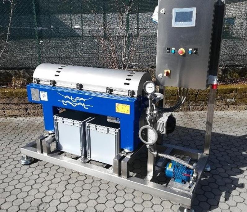 Max bowl speed 4900 RPM, conical bowl, 2" single lead conveyor, 7.5 HP motor 230/460/3/60/3450 RPM, 2 HP variable speed backdrive, guards and control panel, unitized on stand. Reconditioned to "as new" with 6 month full mechanical warranty.
