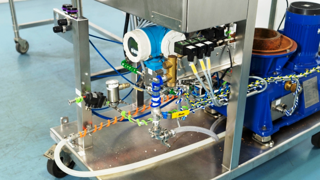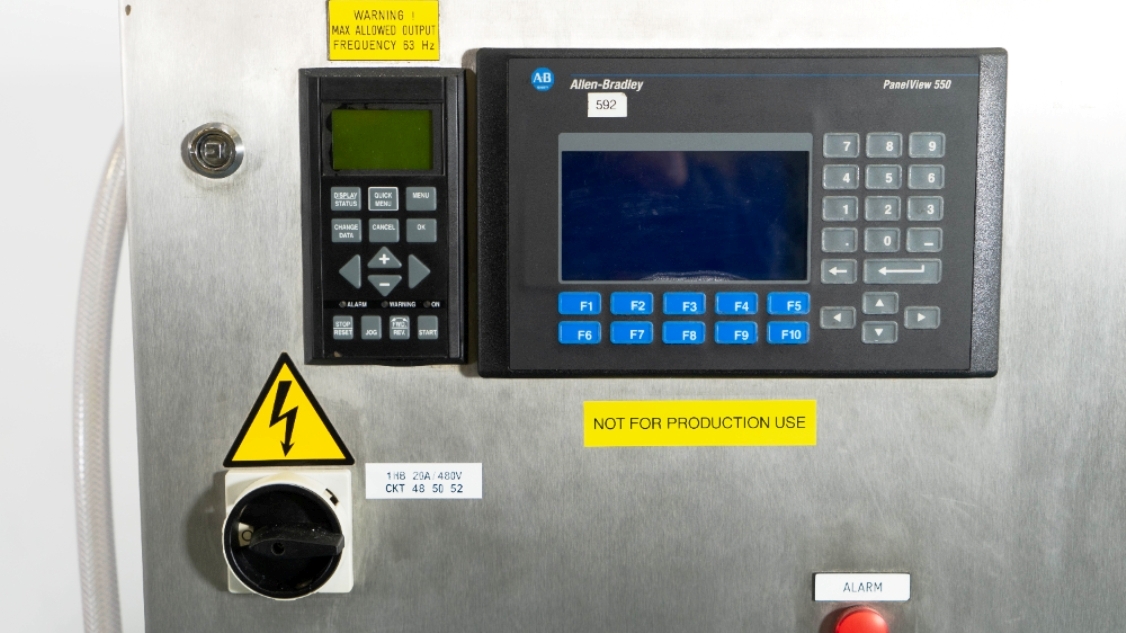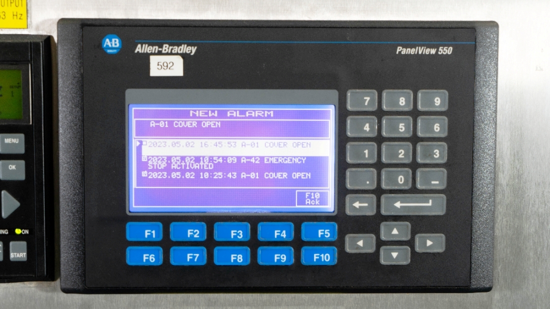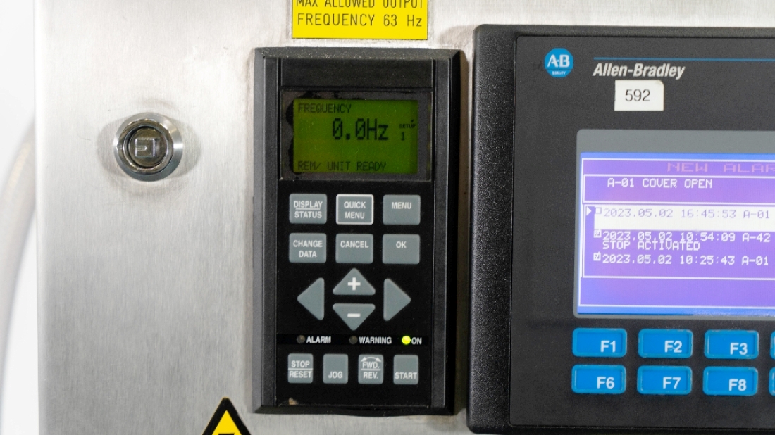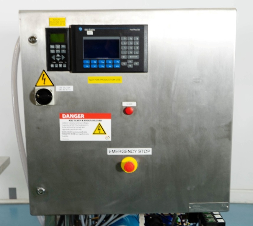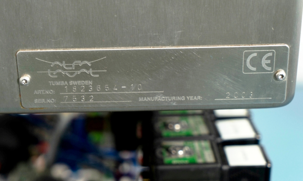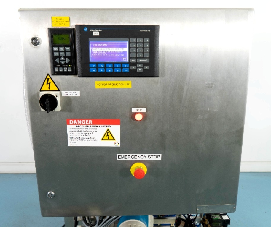 The Alfa-Laval LAPX 404 SGP-31C CLARA 20 clarifier module is equipped with a robust 3.7 kW motor operating at 460V, 3-phase, 60Hz, and 3470 RPM, ensuring reliable performance even under demanding conditions. The unit is designed for easy integration into existing production lines, featuring a portable cart that allows for mobility and flexibility in placement. Additionally, the inclusion of piping, tools, and the Allen-Bradley PanelView 500 control panel enhances user experience by providing intuitive control and monitoring capabilities. This clarifier module, manufactured in 2003 and maintained in very good condition, represents a valuable investment for any facility looking to enhance its liquid processing capabilities while ensuring operational efficiency.