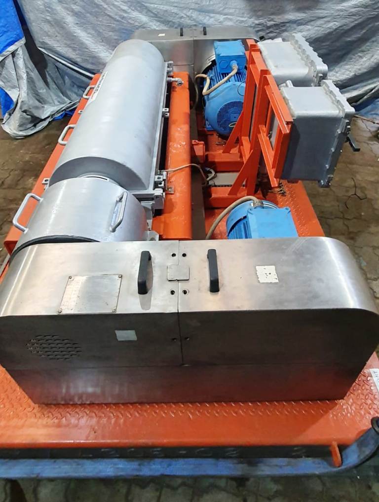 Max bowl speed 3200 RPM, 1975 x G, 14" x 57.5" bowl ID. 4.3" single lead STC-tiled conveyor, 50 HP XP motor 460/3/60, 15 HP XP backdrive, 57:1 3.5 kNm gearbox, feed tube, guards, vibration switch/isolators and XP control panel, unitized on oilfield skid. Excellent condition. Located in India.