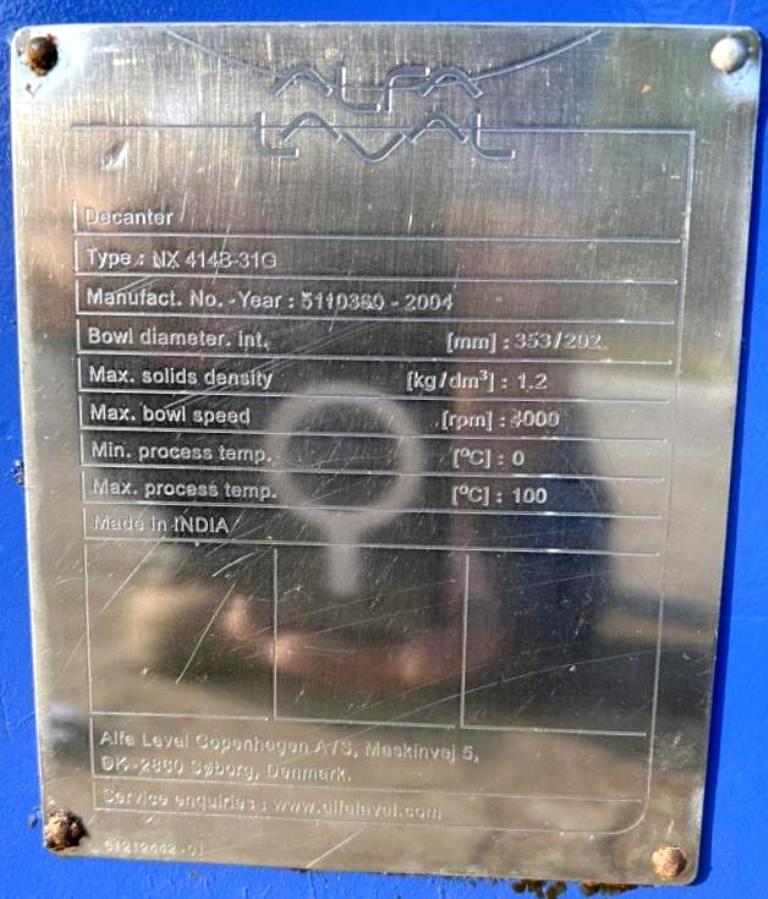 These centrifuges come equipped with essential components such as a feed tube, guard, stand, and control panel, ensuring a comprehensive solution for your separation needs. The 316 stainless steel construction not only provides excellent corrosion resistance but also ensures that the equipment can withstand harsh industrial environments, making it suitable for a wide range of applications, including food processing, wastewater treatment, and chemical manufacturing. With their vintage dating back to 2001 and 2004, these units have been well-maintained and are in very good condition, offering buyers a reliable option without the premium price tag of new equipment. Investing in (2) Alfa-Laval NX 414B-31G decanter centrifuges, 316SS. means acquiring a proven technology that enhances productivity while minimizing downtime.
