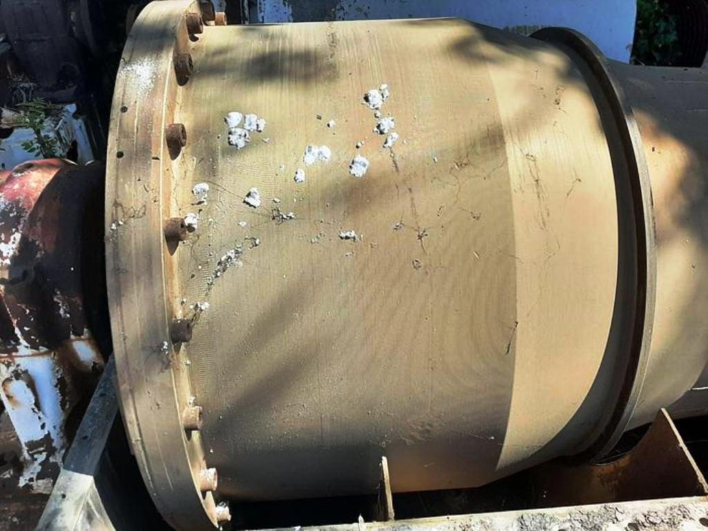 Max bowl speed 1600 RPM, 1422 x G, rated @ 8-25 TPH. Cyl/15/long 3 contour bowl, 6" single lead hardsurfaced conveyor, 125 HP motor 230/460/3/60/1185 RPM, SA-57 39:1 gearbox with TA assembly, lube system, guards, feed tube and chutes. SS-lined case and cover. Very good condition.