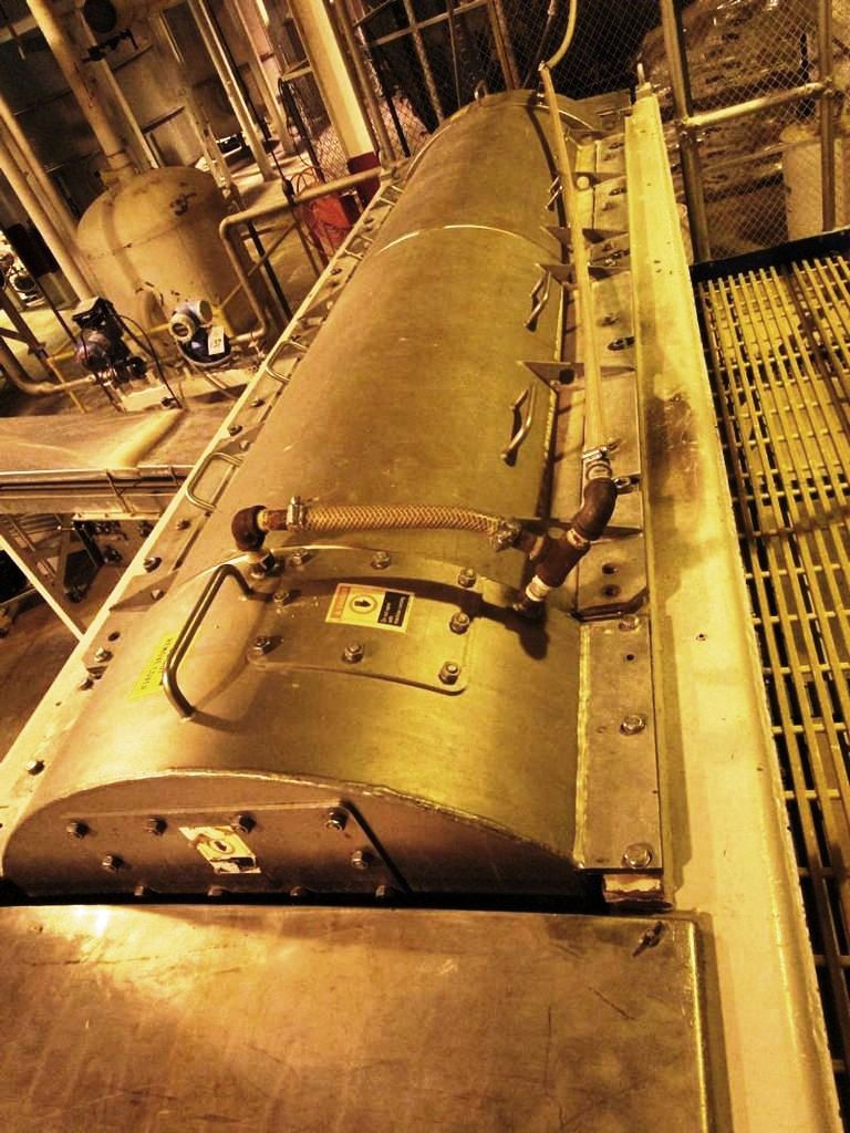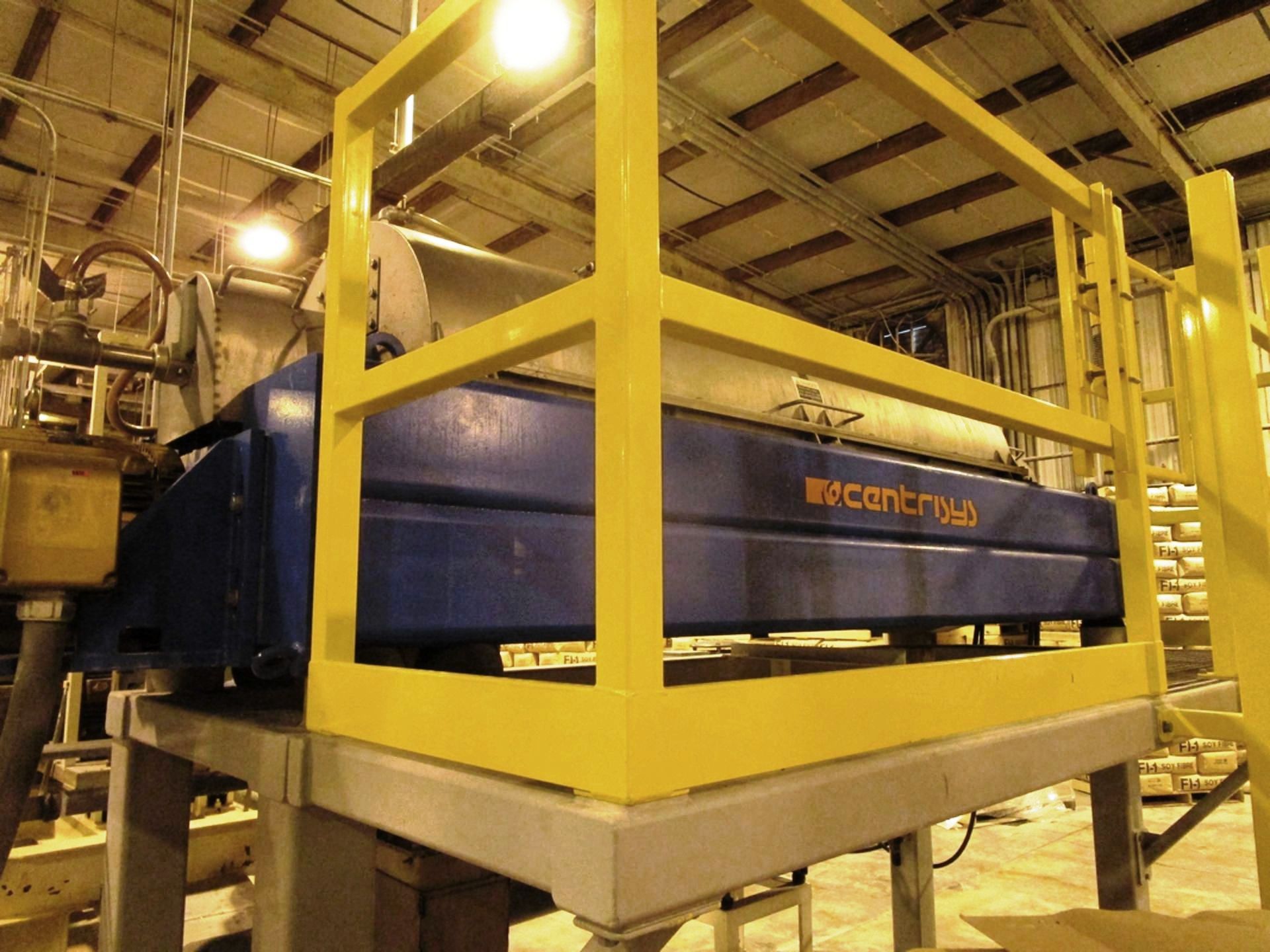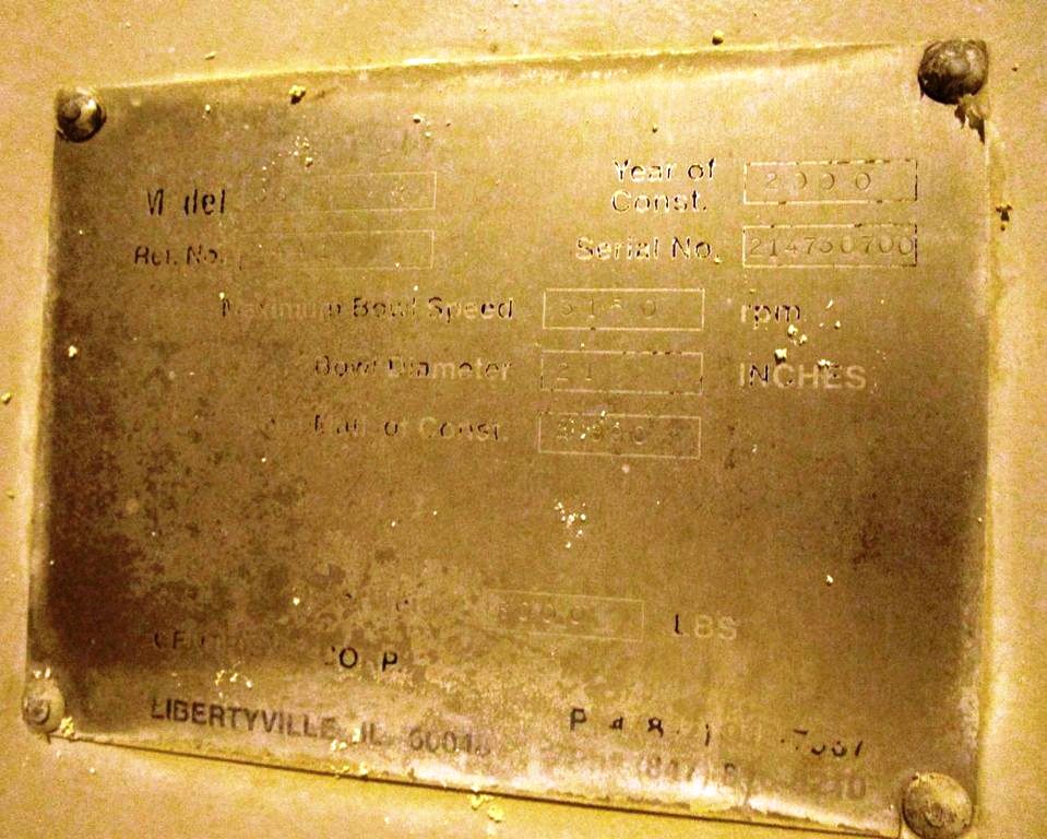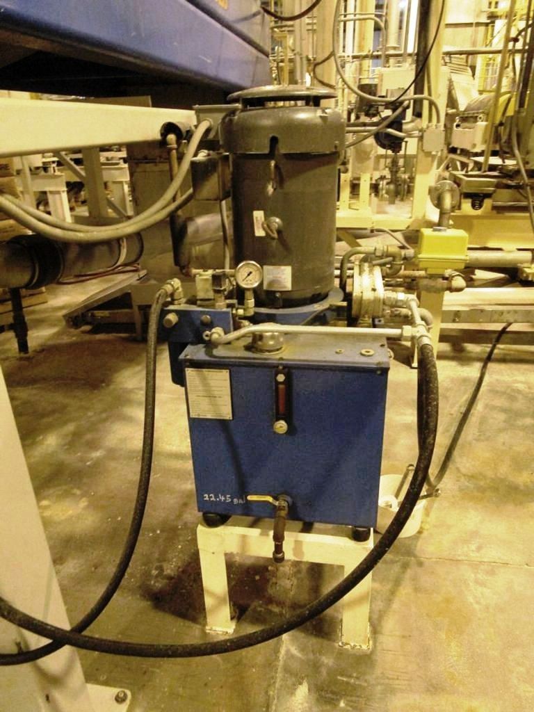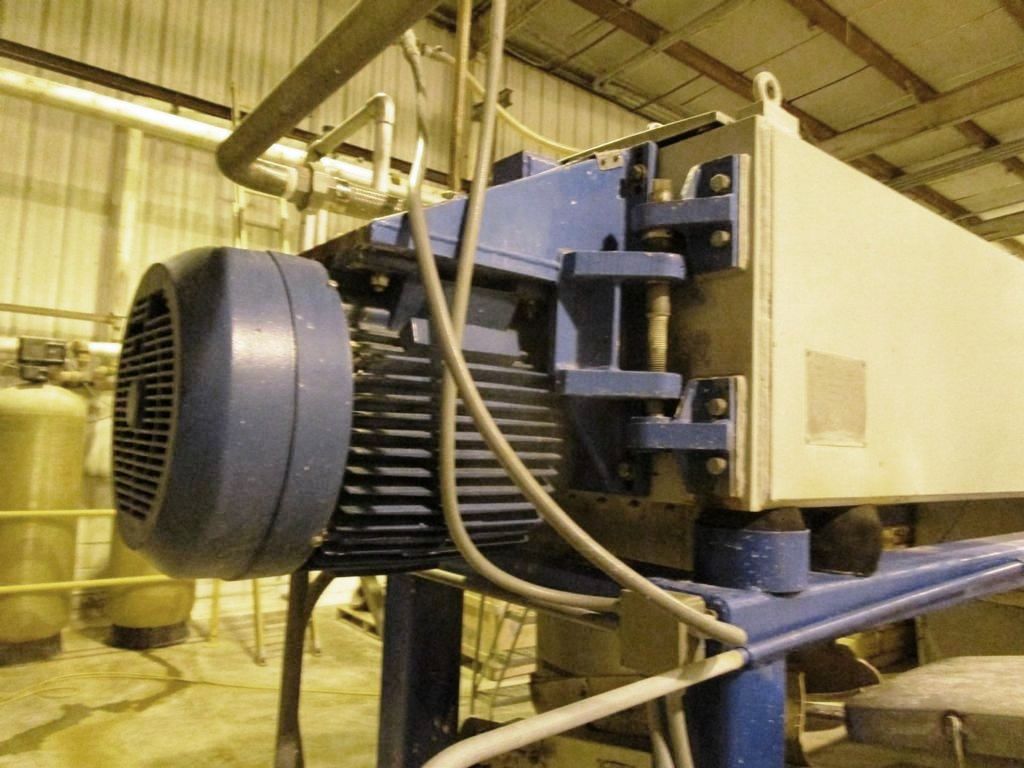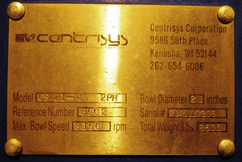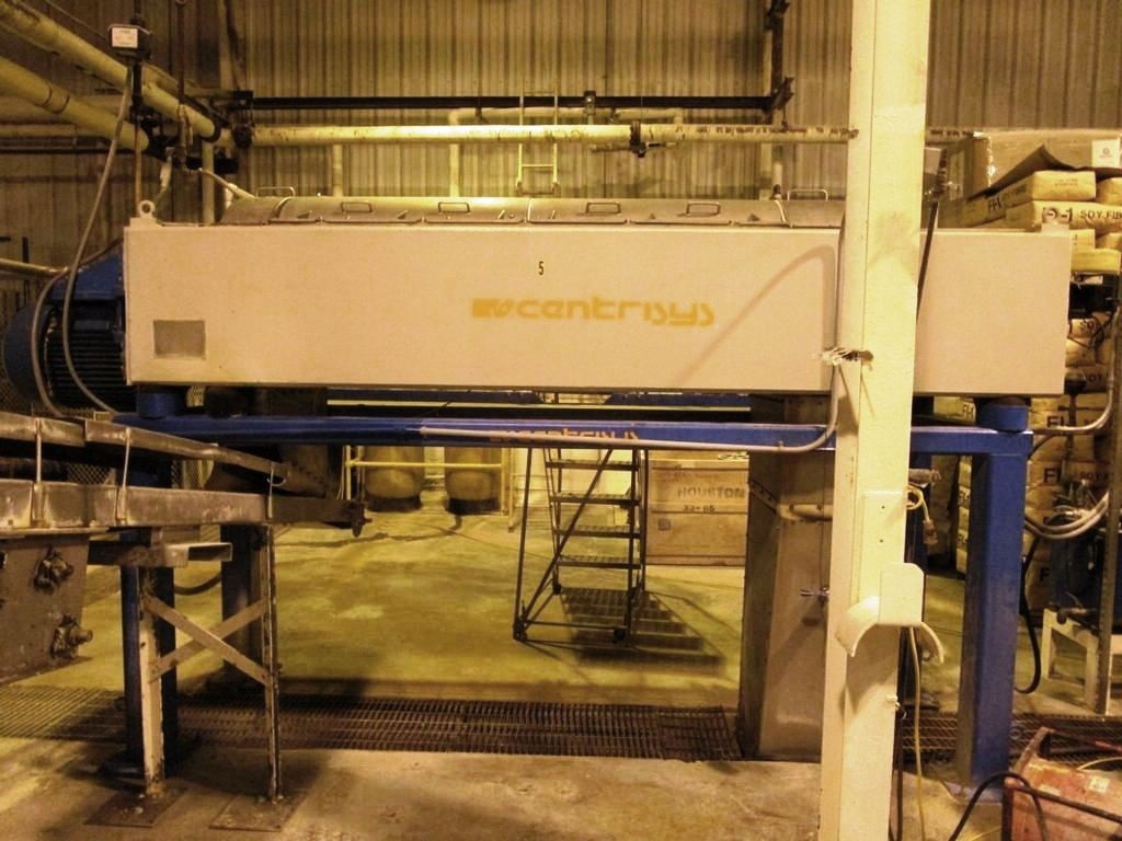 Max bowl speed 3150 RPM, 2950 x G, 21" x 90" bowl ID, rated @ 100-200 GPM. 10" single lead hardsurfaced conveyor, 60 HP motor 230/460/3/60/3450 RPM, 40 HP Viscotherm hydraulic backdrive system, feed tube, guards, lube system, vibration switch/isolators, chutes, Allen-Bradley Panelview 600 touch pad controller and Viscotherm CVC display in SS control panel. Prior use: Soy fiber. 2000 vintage. Very good condition.