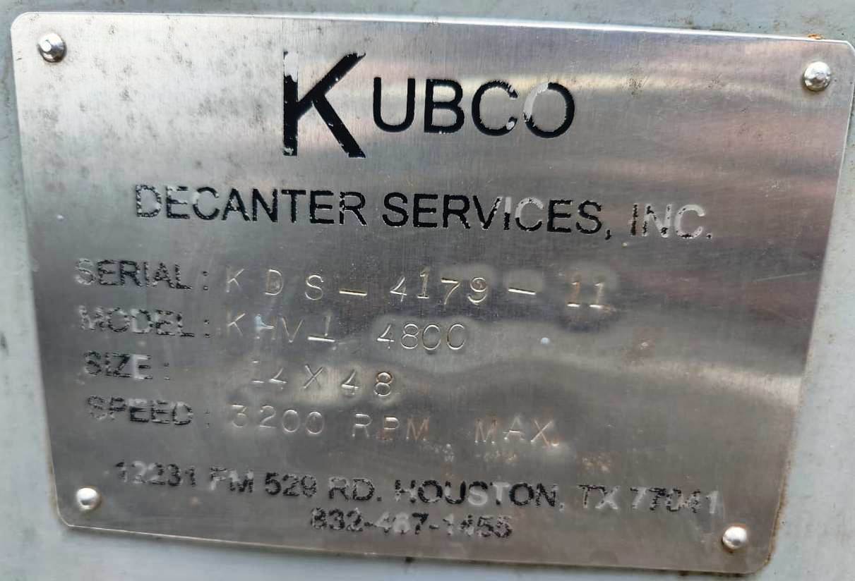 (2) Kubco KHV-4800 14 x 48" oilfield decanter skids, SS. are engineered for high-performance separation in challenging oilfield environments. With a maximum bowl speed of 3200 RPM and a centrifugal force of 2036 x G, these decanters are designed to efficiently separate solids from liquids, ensuring optimal performance and reliability. The adjustable liquid ports allow for precise control over the flow rates, while the hogged-out cake ports, equipped with wear liners and flingers, enhance the durability and longevity of the equipment, making it capable of handling abrasive materials with ease. The robust construction of these decanter skids ensures they can withstand the rigors of oilfield operations, providing a reliable solution for your separation needs.