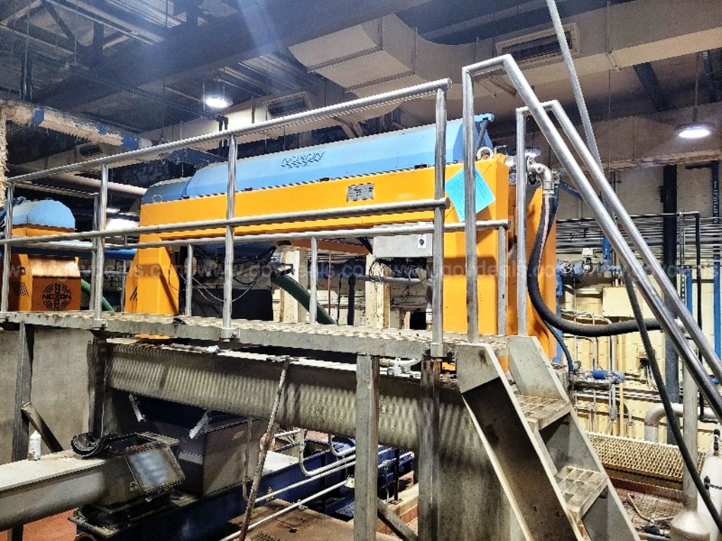 Constructed with durability in mind, the epoxy-coated carbon steel material of the (2) Noxon DC-20 ELHSAPLM decanter centrifuges ensures resistance to corrosion and wear, extending the lifespan of the equipment even in challenging environments. The inclusion of STC tiles on the feed zone, conveyor, and cake discharge ports further enhances the durability and efficiency of the centrifuges, minimizing maintenance needs and downtime. Each unit is powered by a robust 30 KW ABB main drive motor operating at 440/3/60/1750 RPM, complemented by a 7.5 KW backdrive. The integrated PLC control panel with variable frequency drives (VFD) for each motor allows for precise control over the operation, enabling users to optimize performance based on specific processing requirements. With a vintage of 2010 and in very good condition, these centrifuges represent a reliable and high-performance solution for industrial separation needs.