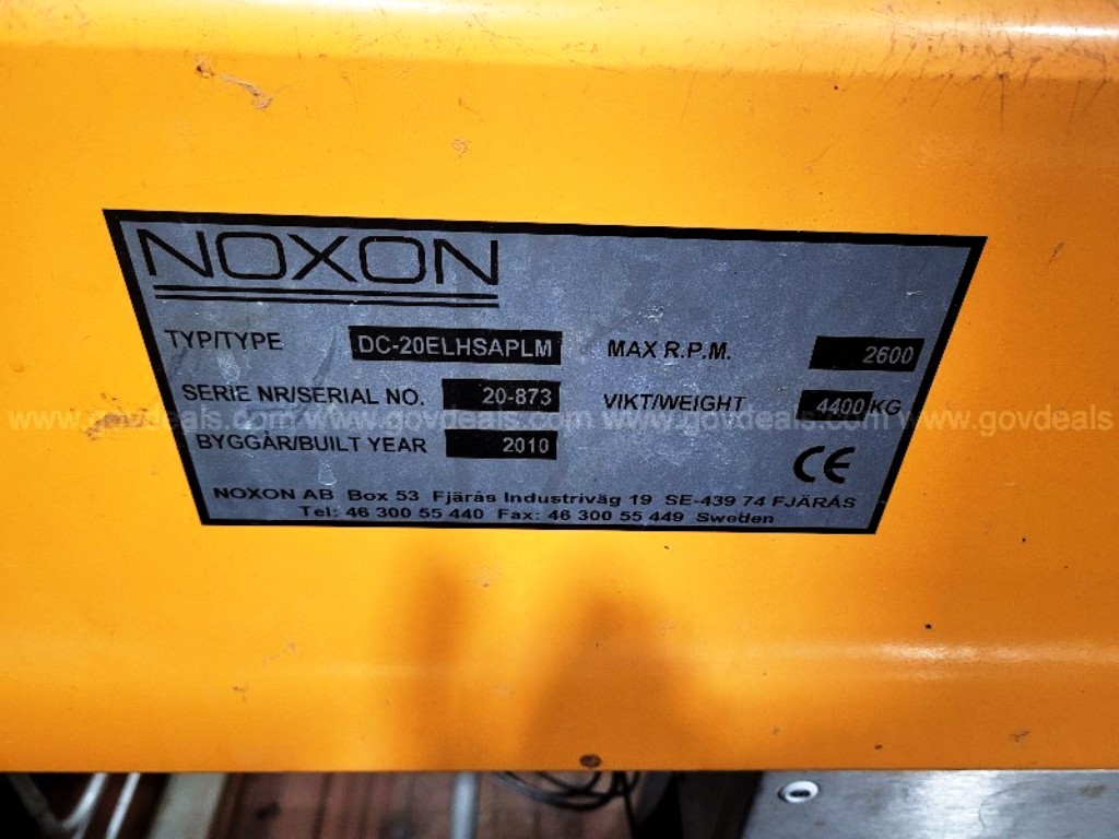 The (2) Noxon DC-20 ELHSAPLM decanter centrifuges, epoxy-coated CS, are engineered to deliver exceptional performance in the separation of solids from liquids, making them ideal for applications in wastewater treatment and other industrial processes. With a maximum bowl speed of 2600 RPM and the ability to generate up to 2004 Gs, these centrifuges are designed to efficiently handle a wide range of materials. The co-current design enhances the separation process, allowing for optimal throughput with a rated capacity of 8-25 m3/hr (110 GPM max) and a maximum dry solids handling capability of 800 kg. The large bowl dimensions, measuring 531 x 2298 mm (20.9 x 90.5 inches), provide ample space for effective separation, ensuring that the equipment meets the rigorous demands of industrial applications.