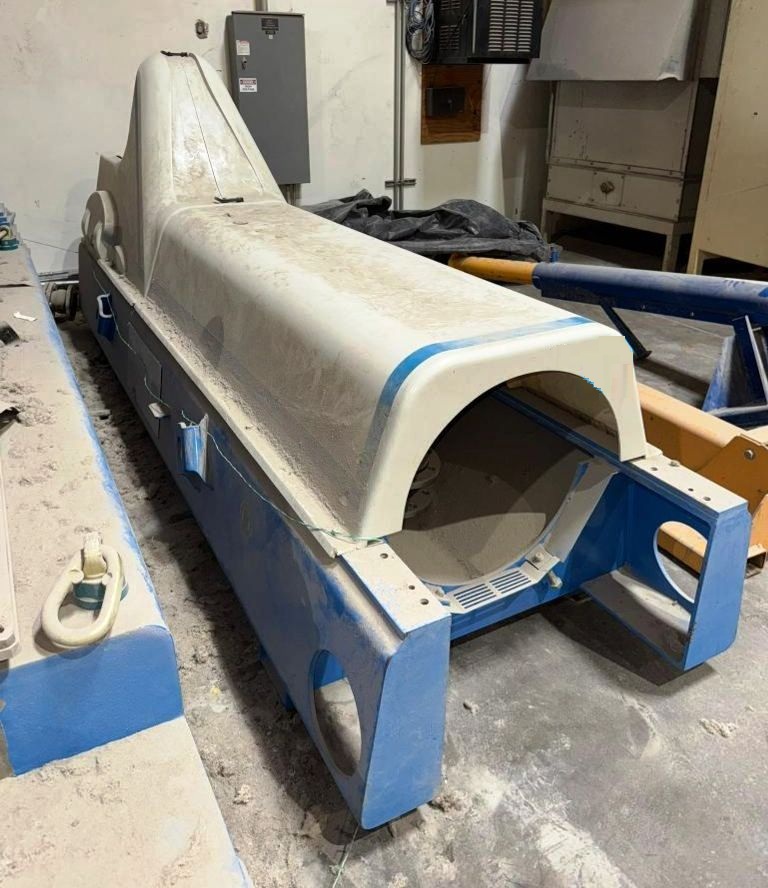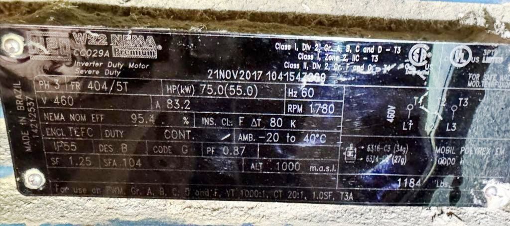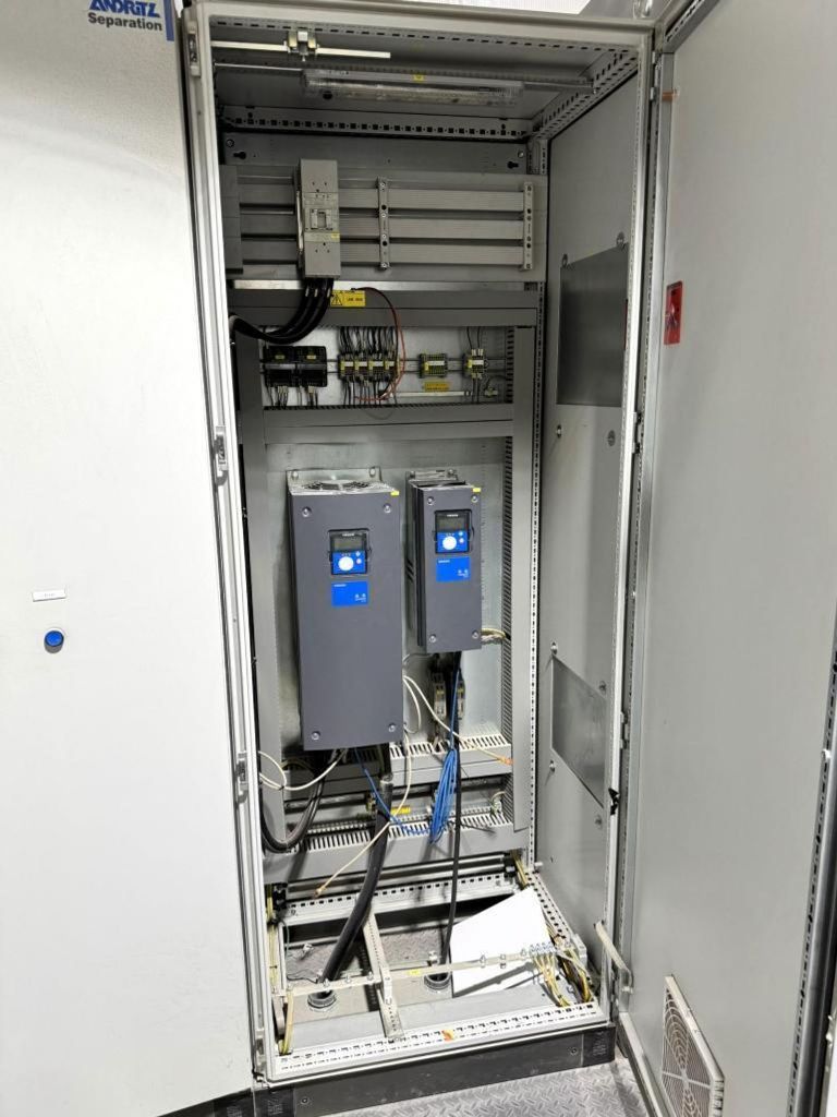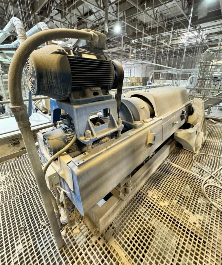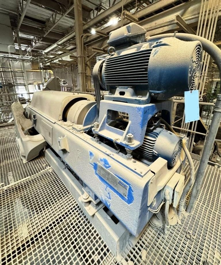 In addition to their impressive operational capabilities, these centrifuges come equipped with a comprehensive set of features that enhance their functionality and ease of use. The fiberglass top cover provides a lightweight yet sturdy protection, while the 6-inch single lead hardsurfaced conveyor ensures efficient material transport. The system is powered by a 75 HP XP motor, operating at 460V/3/60/1780 RPM, complemented by a 20 HP XP backdrive and a cyclo gearbox for reliable performance. Safety and operational integrity are prioritized with the inclusion of guards, a vibration switch with isolators, and a PLC control panel featuring variable frequency drives (VFDs) and a human-machine interface (HMI) panel. With a vintage of 2018 and prior use in nylon fiber dewatering, these centrifuges are in very good condition, ready to deliver exceptional performance in your industrial applications.