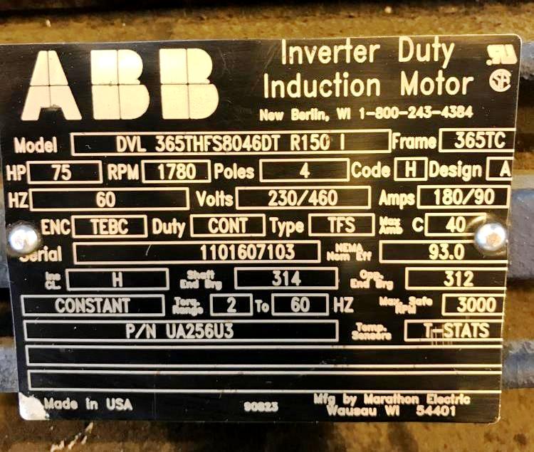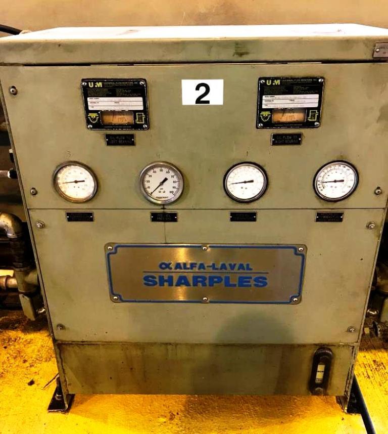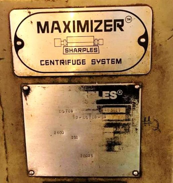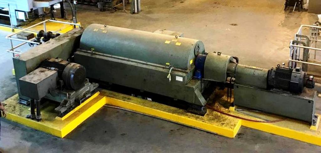 Max bowl speed 2600 RPM, 2780 G's, 360 degree cake discharge, 10" single lead conveyor with STC tiles and STC feed zone, moon liquid plate dams, SS casings and chutes, bowl silence ring, 300 HP motor 460/3/60/1780 RPM, P220 95:1 gearbox, 75 HP backdrive on stand, feed tube, guards, lube system and vibration switch/isolators. 1990 vintage. Excellent condition.