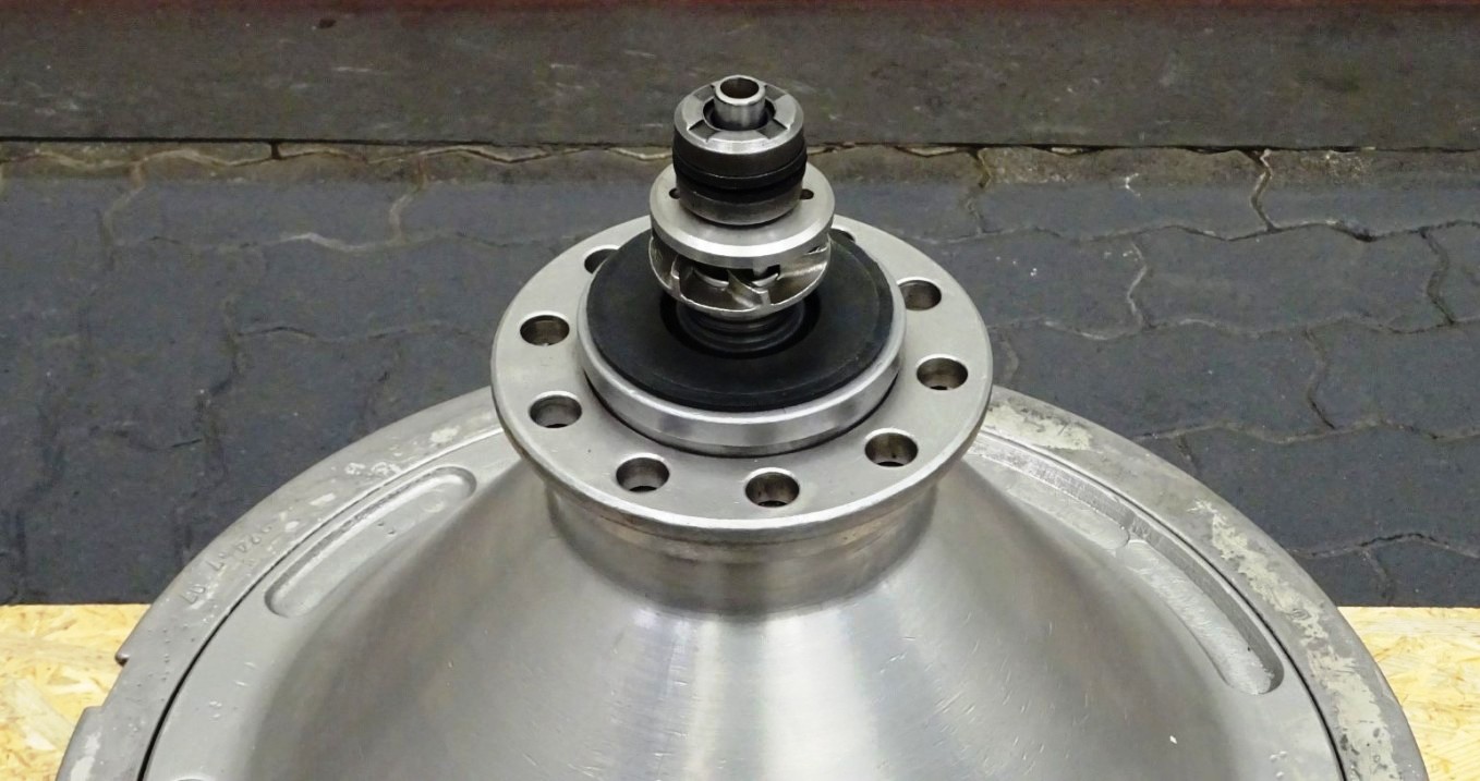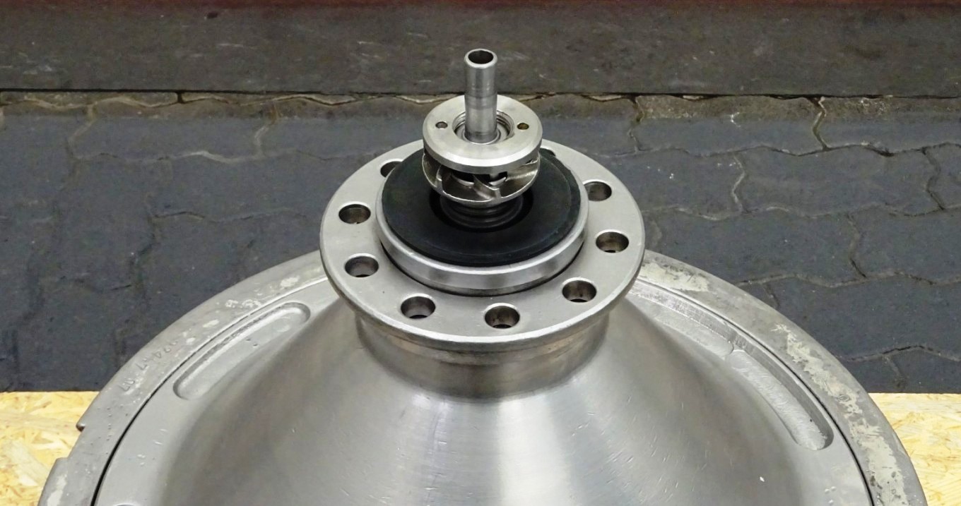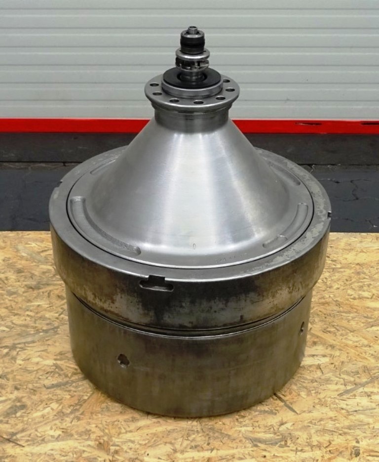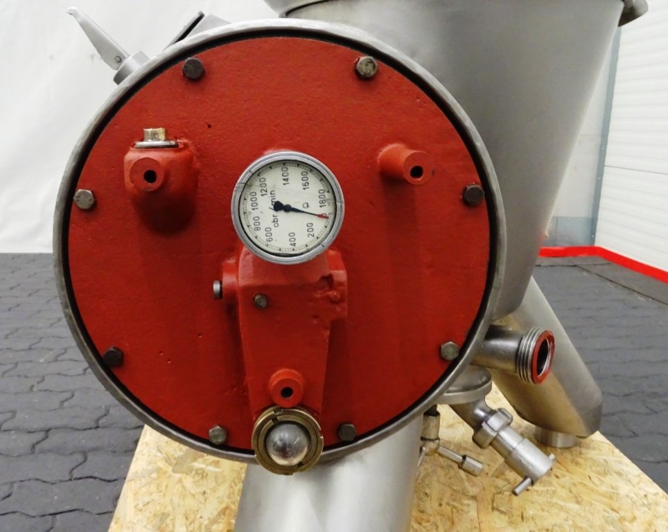 Max bowl speed 4500 RPM, rated @ 10,000 LPH, 22,000 PPH. 11 KW motor 380/3/50/1460 RPM, inlet and outlet pipes with flow indicator, tools and some spare parts. 1974 vintage. Excellent condition. Located in Europe.