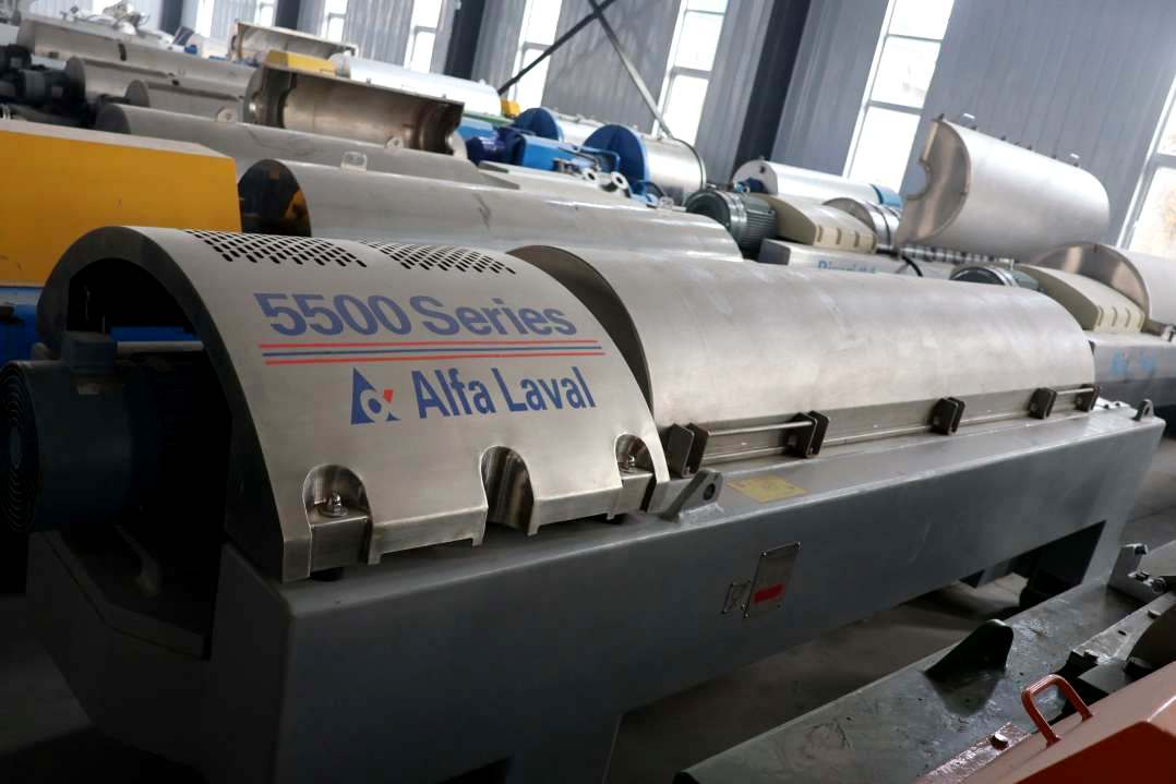 Max bowl speed 3100 RPM, 2416 x G, 450 x 2360mm = 17.7 x 92.9" bowl ID. Rated @ 120 GPM. 20 degree contour bowl. 360 degree cake ports with wear protection, 6" single lead STC-tiled conveyor, 169:1 6.0 kNm gearbox, 37 KW motor 380/3/50/1450 RPM, 15 KW backdrive, guards, feed tube and lube system on stand. 2007 vintage. Excellent condition. Located in Africa. Same as ALDEC 508, AVNX 4565 and NX 937.