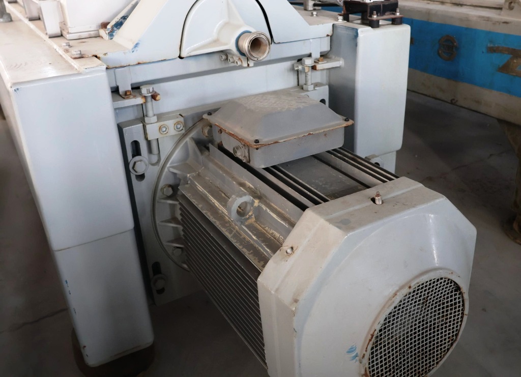 The Alfa-Laval ALDEC G2-70 features a robust construction with a 316 stainless steel body, ensuring durability and resistance to corrosion, which is vital for maintaining performance in harsh environments. The design incorporates 360-degree cake ports equipped with wear protection, which minimizes maintenance needs and extends the lifespan of the machine. The single lead STC conveyor, with a ratio of 169:1, is driven by a powerful 6.0 kNm gearbox and a 37 KW motor operating at 380/3/50/1450 RPM, providing reliable and efficient operation. Additionally, the 15 KW backdrive system ensures that the centrifuge can handle varying feed conditions effectively. This unit, manufactured in 2016 and in excellent condition, is currently located in Africa, making it a valuable opportunity for businesses looking to enhance their separation capabilities with a high-quality, pre-owned centrifuge.