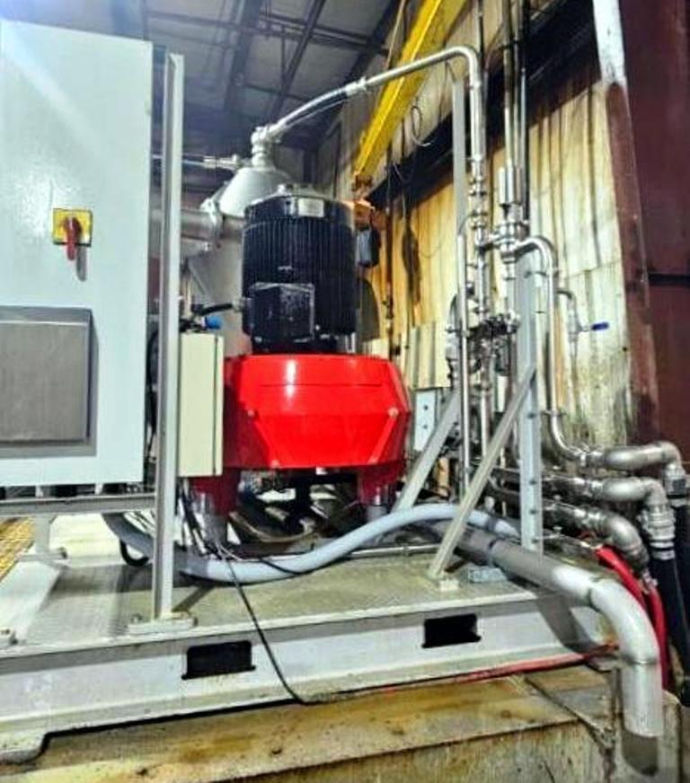 Max bowl speed 4180 RPM, rated @ 30,000 LPH (128 GPM), sludge cap 25.7 L. Self-triggering design, 45 KW motor 460/3/60/1775 RPM, sludge tank, tools, valves, piping, PLC control panel with VFD. Reconditioned to "as new" with 6 month full mechancial warranty.