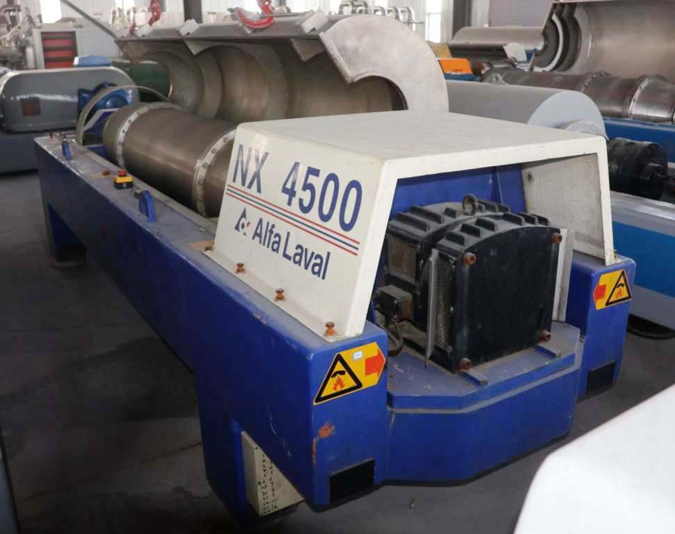The robust construction of the Alfa-Laval DFNX 4565 is complemented by a powerful 55 KW motor, which operates efficiently across multiple voltage configurations (380/690/3/50/1480 RPM). This versatility makes it suitable for a wide range of installations. The decanter is equipped with a 169:1 gearbox and a 15 KW backdrive, ensuring smooth operation and reliable torque transmission. Safety and ease of maintenance are prioritized with the inclusion of guards, a feed tube, and a lubrication system mounted on the stand. This thoughtful design not only enhances operator safety but also simplifies routine maintenance tasks, reducing downtime and increasing productivity. With its 1999 vintage, the Alfa-Laval DFNX 4565 remains a competitive option in the market, comparable to models such as ALDEC 508, SG2-400, and NX 937.