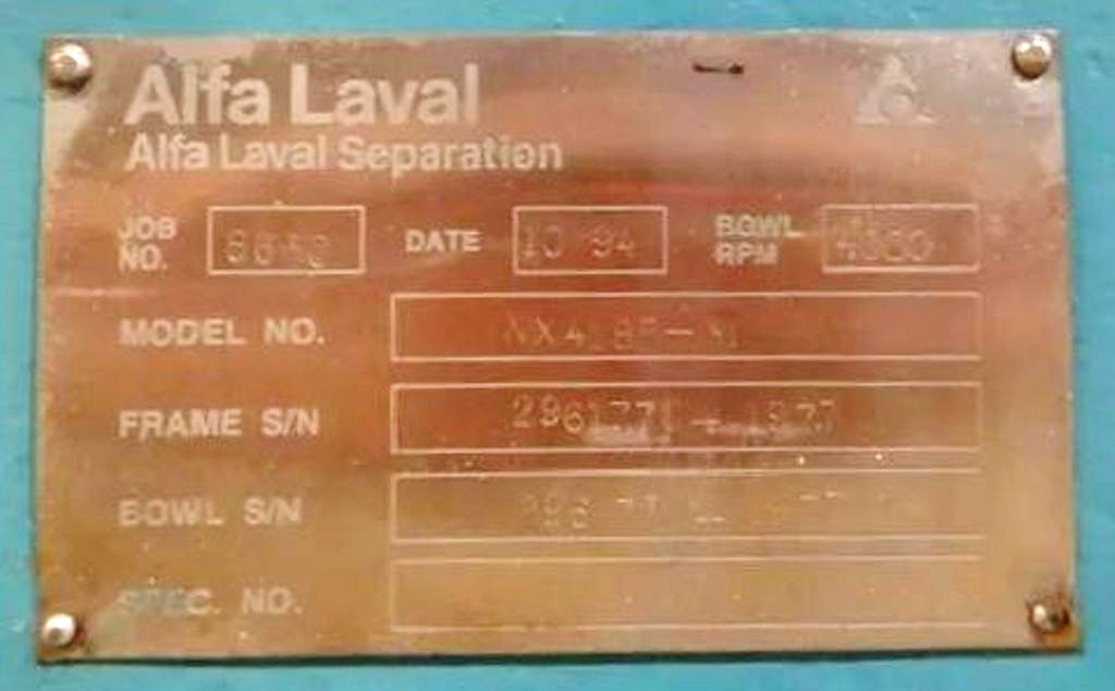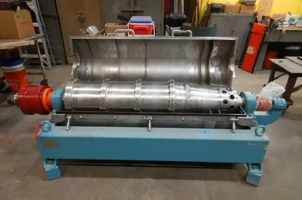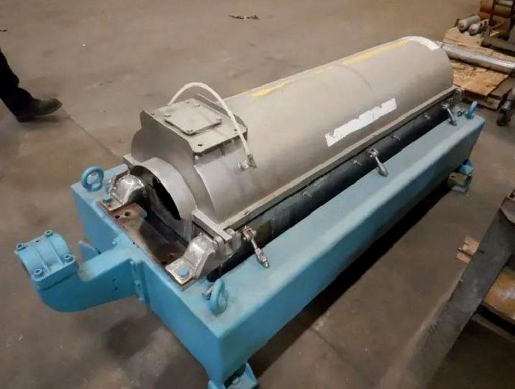 Max bowl speed 4000 RPM, 3158 x G, liquid discharged by gravity, 110mm hardsurfaced Esbjerg conveyor, 159:1 2.5 kNm gearbox. No motor, guards or feed tube. Prior use: Starch and sweeteners. 1977 vintage. Reconditioned and unused since.