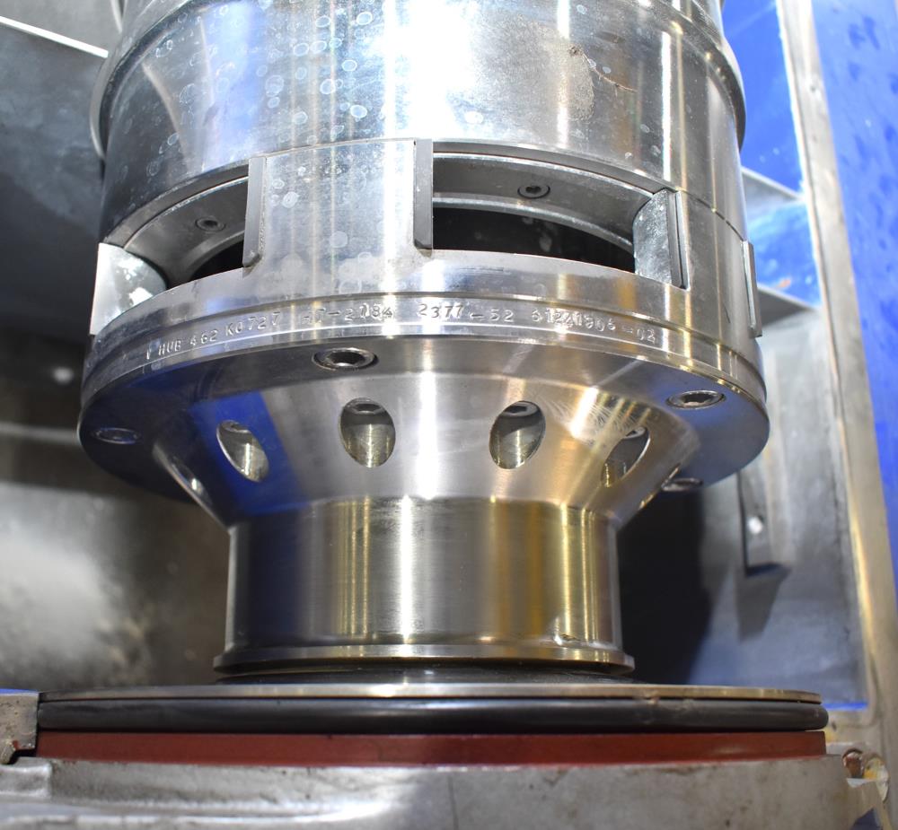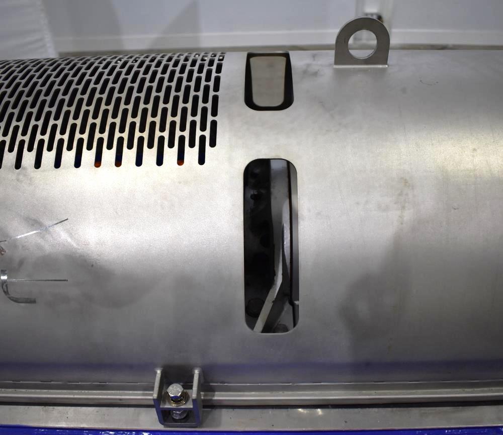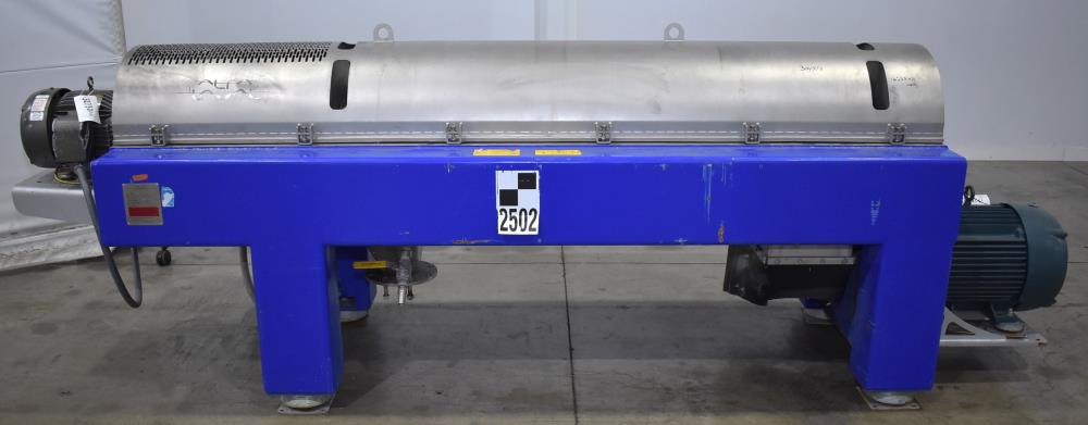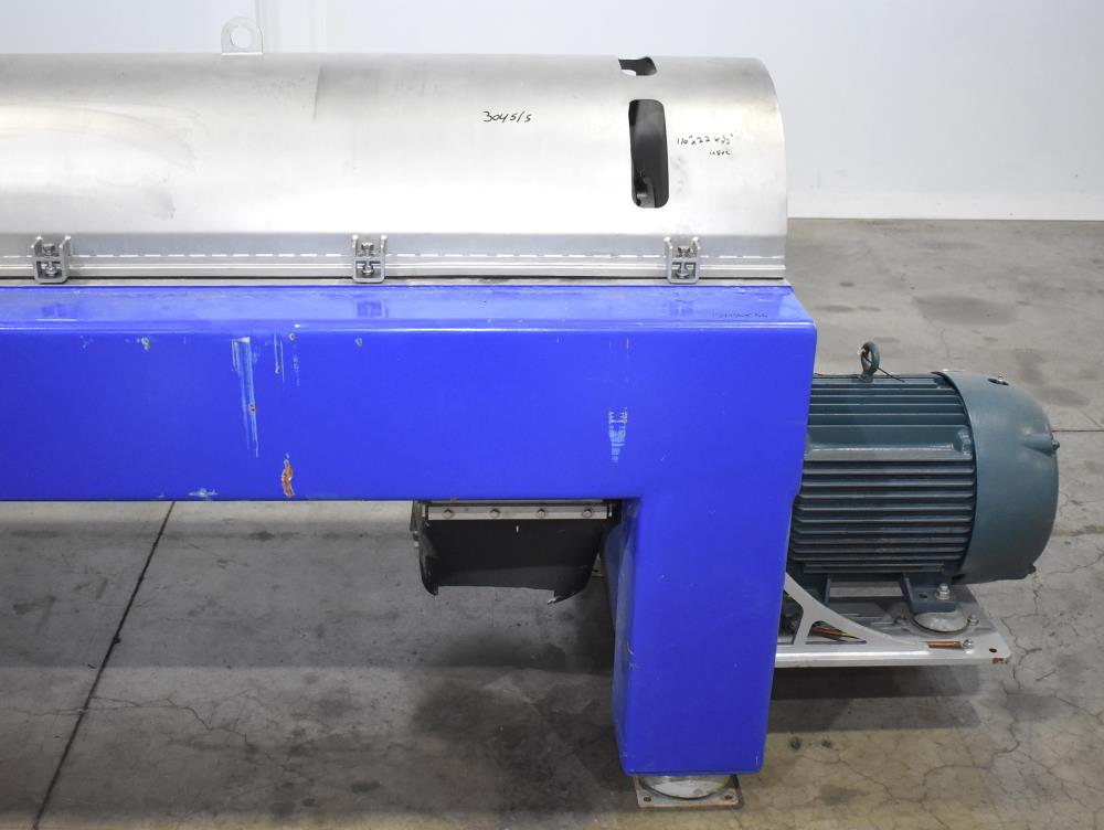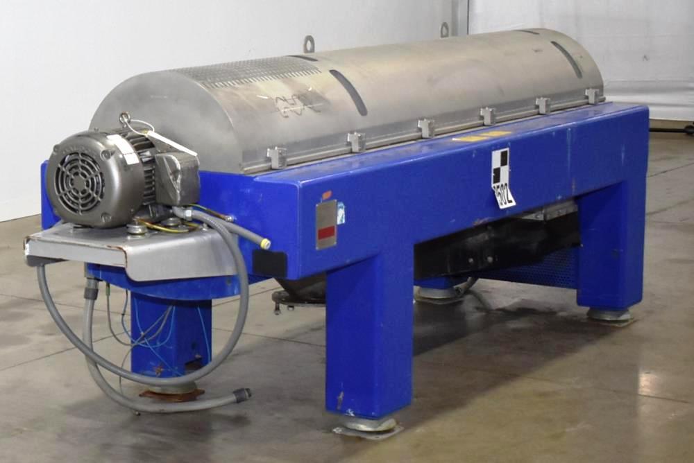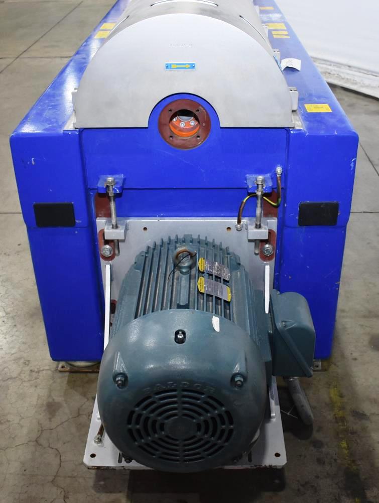 Max bowl speed 4200 RPM, 3558 x G, 10 deg beach angle, 70mm single lead hardsurfaced conveyor, gearbox, 40 HP motor 460/3/60/1775 RPM, 7.5 HP backdrive, VFD on both, guards, vibration switch/isolators, chutes and Siemens PLC control panel. 2016 vintage. Very good condition.