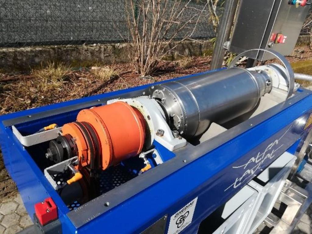 Max bowl speed 5300 RPM, 3140 x G, 200 x 698mm (7.9 x 27.5") bowl ID, rated @ 3000 LPH. 4" single lead conveyor, 4 KW motor 400/3/50/3000 RPM, 45.6:1 gearbox with limit switch, guards, feed tube, vibration switch/isolators, chutes, collection bins, feed pump and PLC control panel with touch screen HMI, unitized on a SS skid. 2010 vintage. Reconditioned to "as new" and unused since. Located in Europe.
