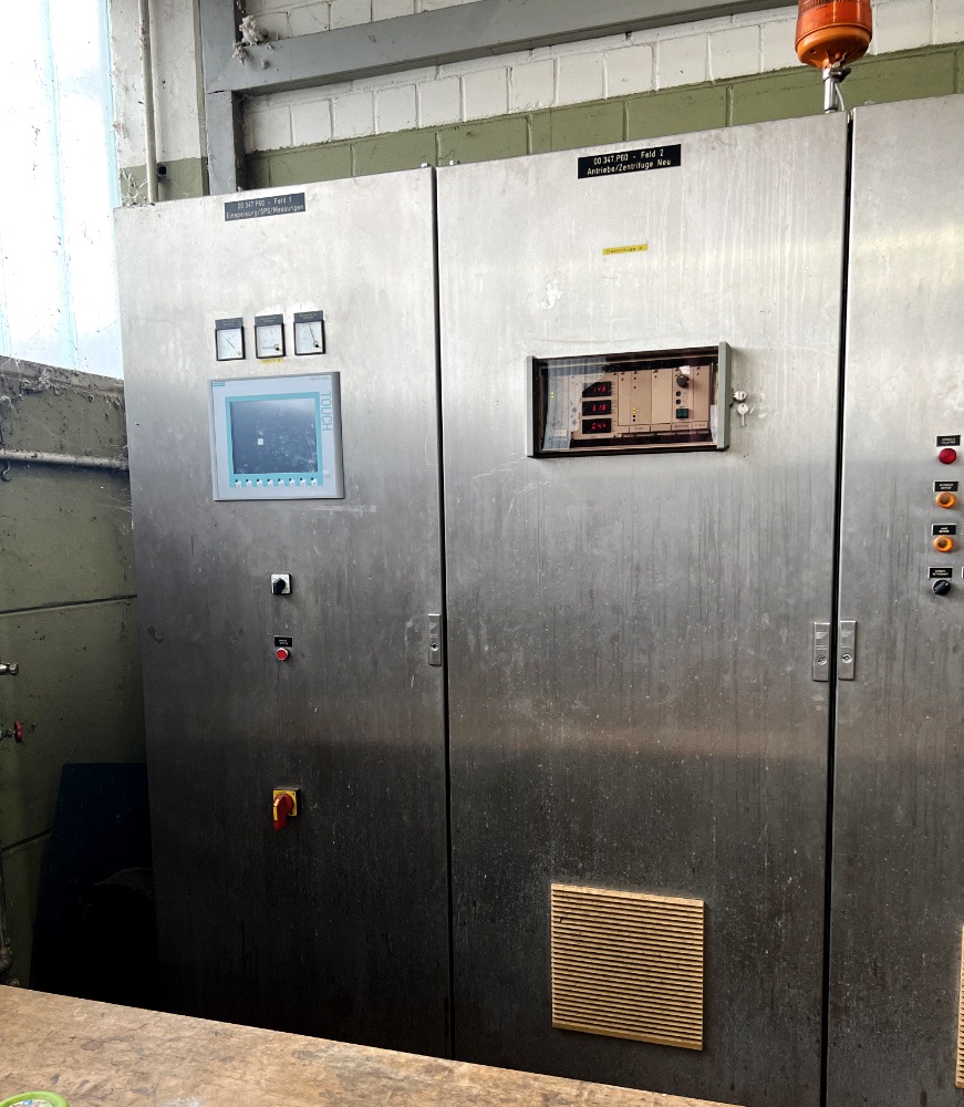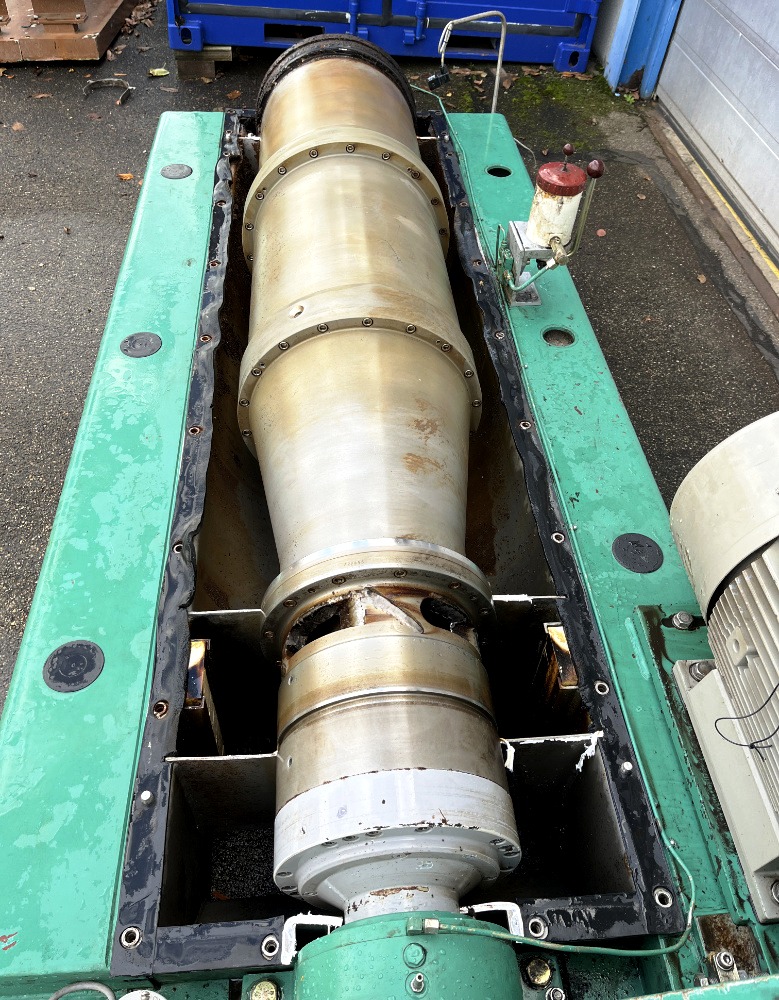 Powering this advanced centrifuge is a robust 30 KW motor capable of operating at 690/400/3/50/2930 RPM, ensuring reliable performance under demanding conditions. The Hiller hydraulic backdrive system, complemented by an 11 KW motor, offers precise control over the bowl speed and torque, allowing for adjustments based on the specific requirements of the application. The inclusion of a guard, feed tube, and control panel with Variable Frequency Drive (VFD) further enhances operational safety and flexibility. This decanter centrifuge, manufactured in 2001, is in very good condition, reflecting its durability and the high-quality materials used in its construction. With FCA Europe shipping terms, it is readily available for industries looking to upgrade their separation technology.