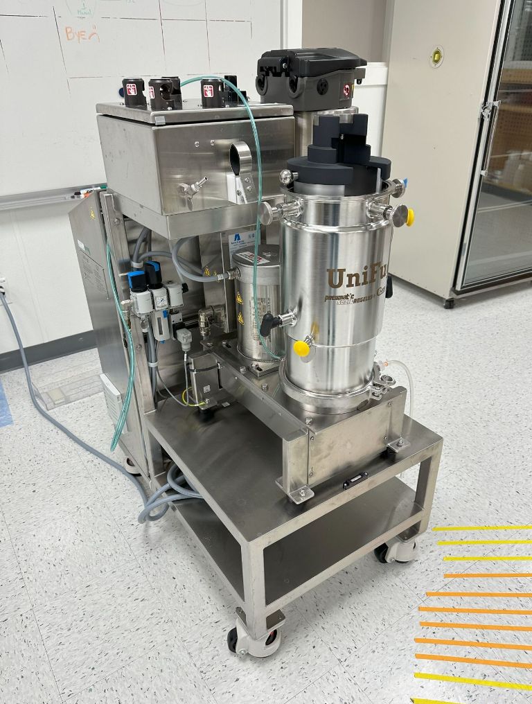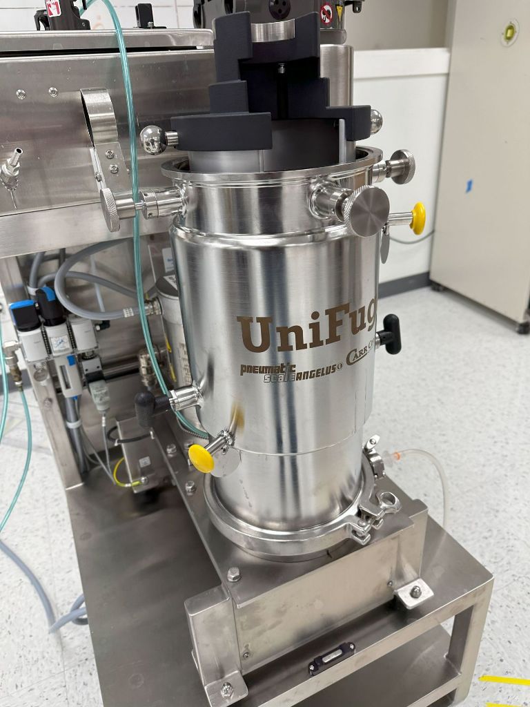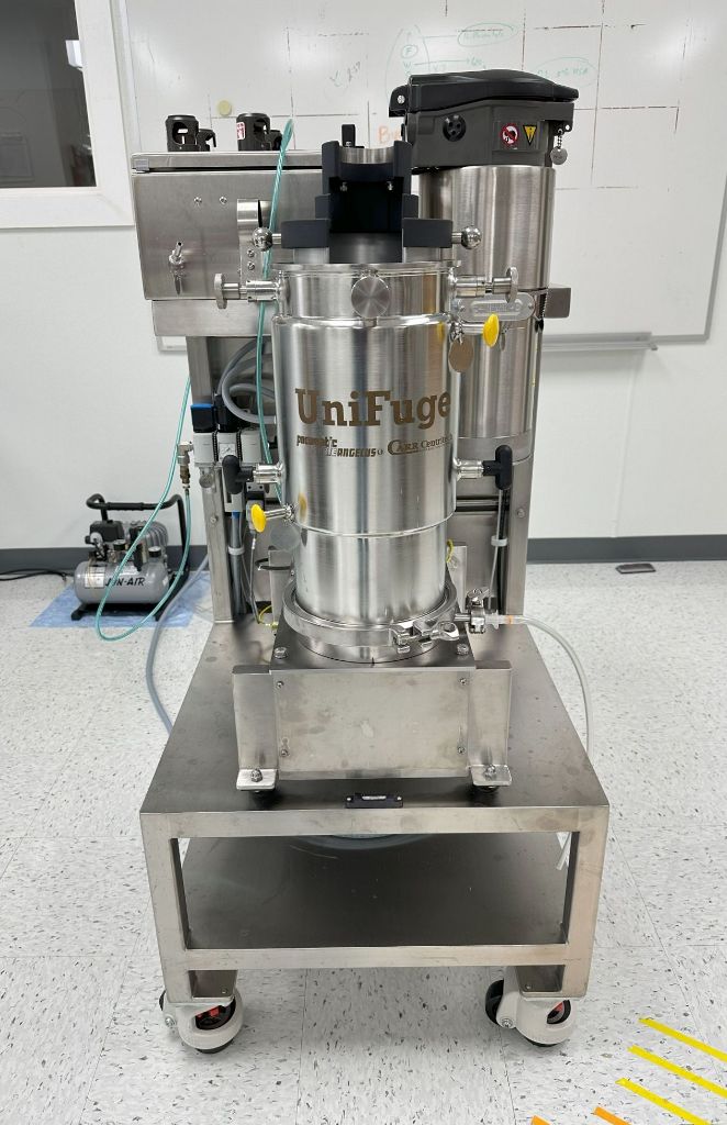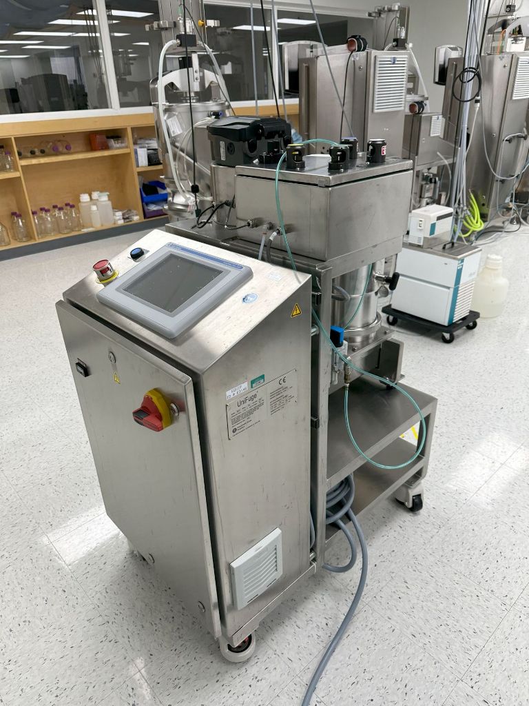 One of the standout features of the Carr Centritech UniFuge is its innovative use of a gamma irradiated single-use module, which eliminates the need for traditional cleaning processes such as Clean-In-Place (CIP) or Sterilize-In-Place (SIP). This not only streamlines operations but also significantly reduces the risk of cross-contamination, making it a preferred choice for applications in biopharmaceutical and biotechnology sectors. The centrifuge is fully automated, allowing for flexible cycle parameters that can be easily adjusted via the user-friendly Allen-Bradley PLC/HMI touch screen interface. This automation ensures consistent results and minimizes the need for manual intervention, thereby enhancing productivity and operational efficiency. Additionally, the unitized design on a trolley facilitates easy mobility and setup, making it a practical solution for dynamic laboratory environments.