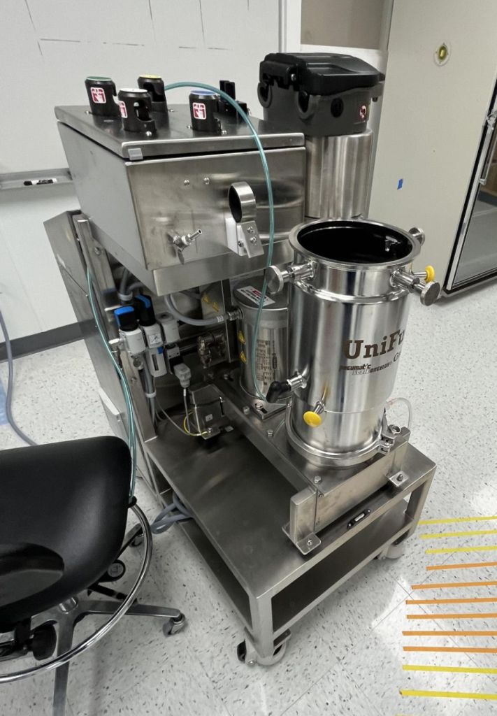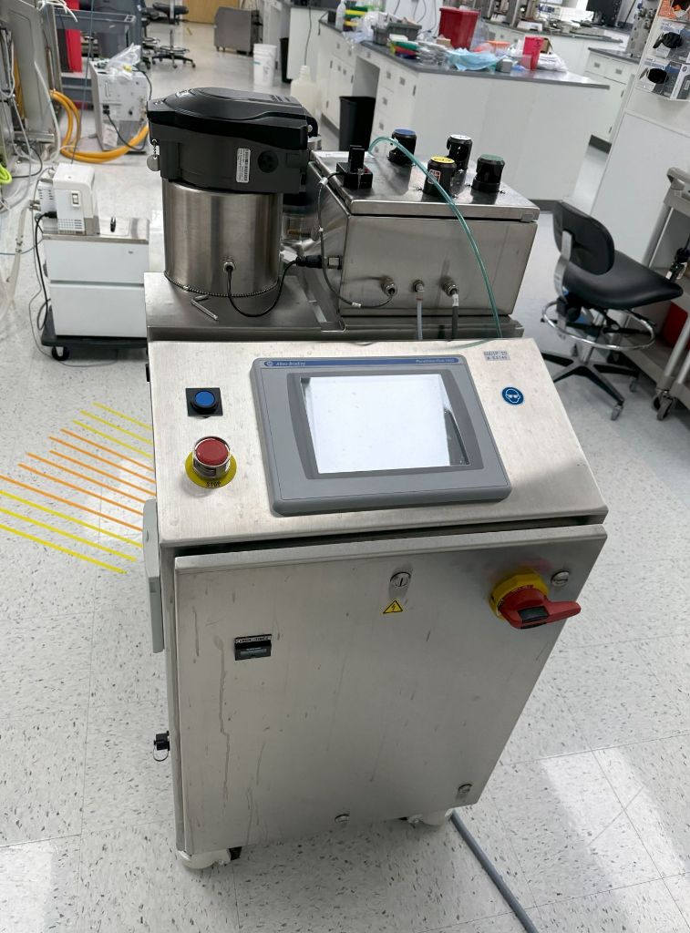 Max bowl speed 6200 RPM, 4000 x G, rated @ 4 LPM max, 4-40C temp, 950 ml or 1.8 L bowl capacity. Utilizes a gamma irradiated single use module that requires no CIP or SIP. Completely automated with flexible cycle parameters. Continuous discharge of supernatant and intermittent discharge of cell culture. Allen-Bradly PLC/HMI touch screen. unitized on a trolley. 2018 vintage. Excellent condition