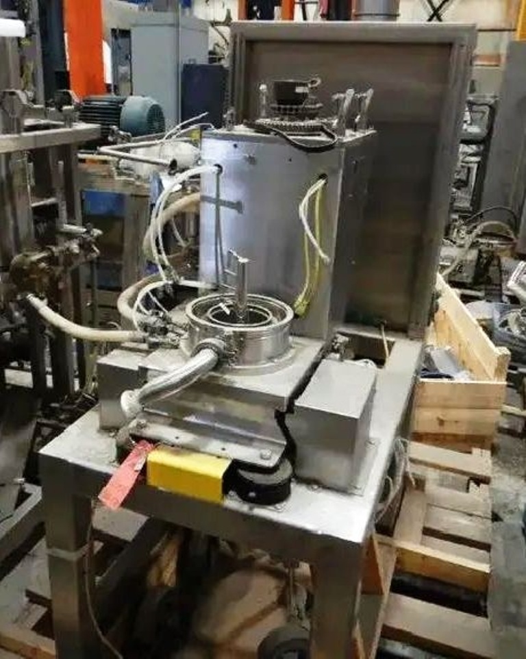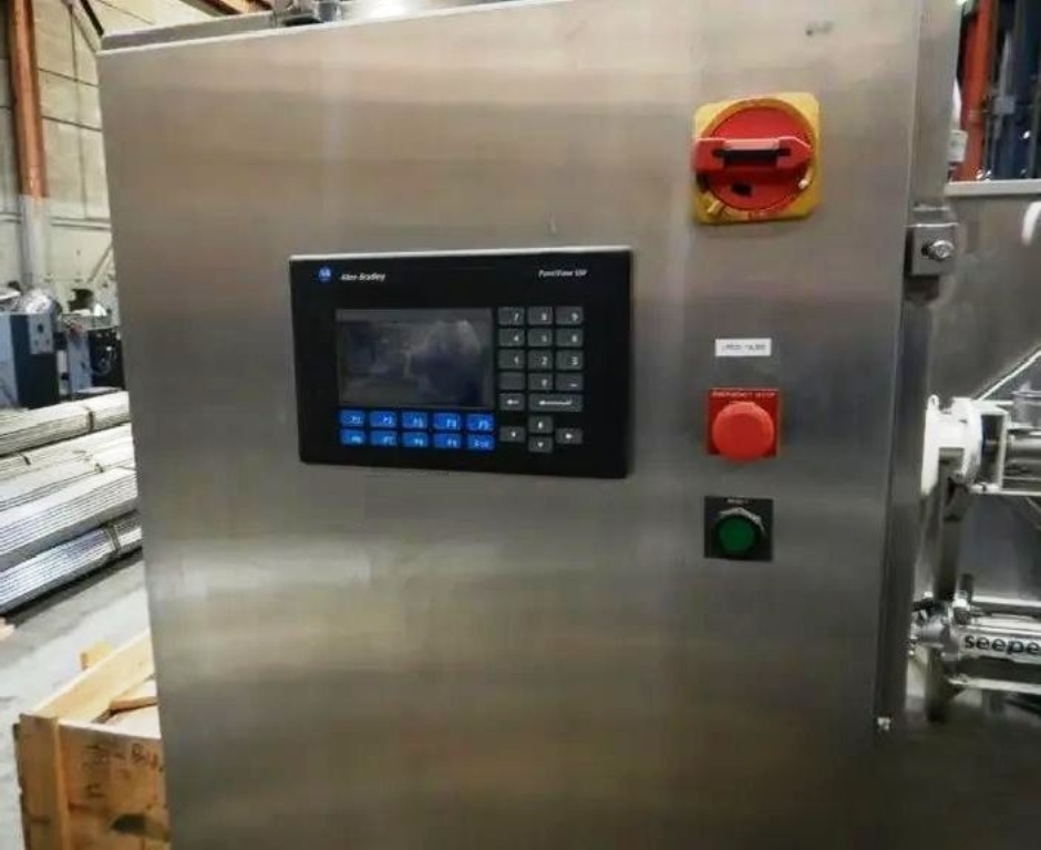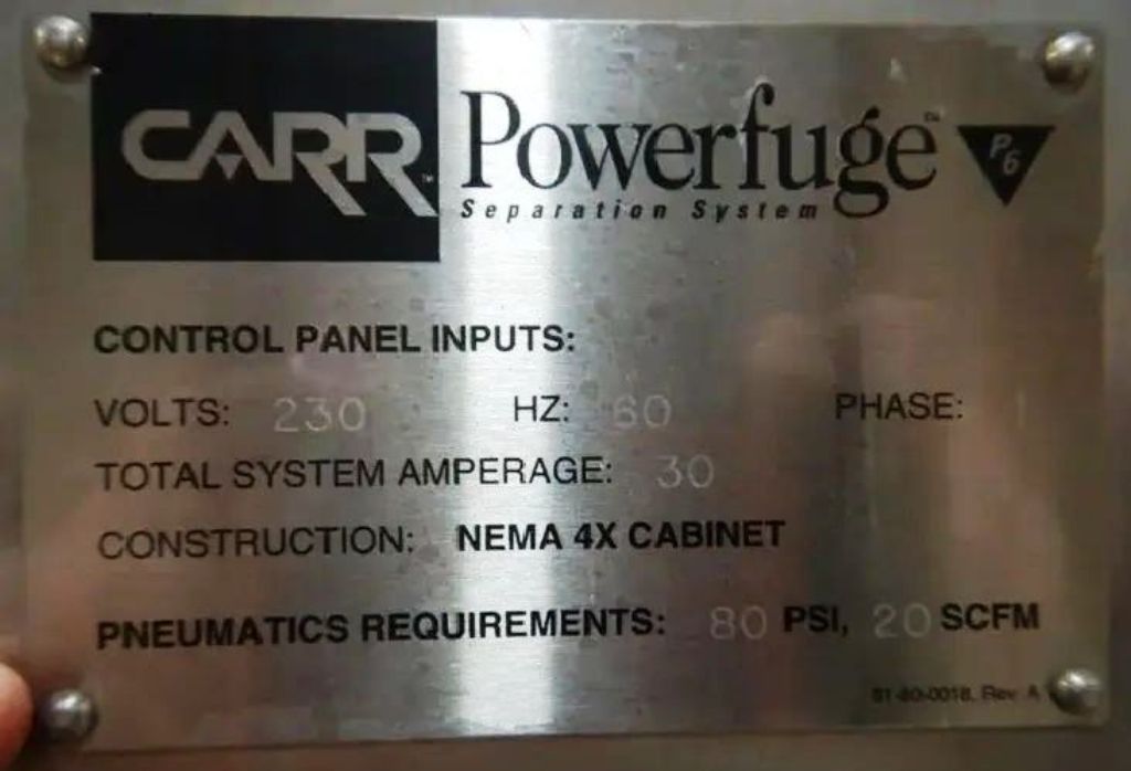 Equipped with a robust 1.5 HP motor operating at 230V/1/60/3450 RPM, the Carr P-6 Powerfuge provides reliable power for continuous operation. The integration of an Allen-Bradley PanelView 550 PLC control panel with Variable Frequency Drive (VFD) allows for precise control over the separation process, enabling operators to easily adjust parameters to suit specific application requirements. This user-friendly interface not only simplifies operation but also enhances the overall efficiency of the system. The unitized design on a skid includes all necessary piping and valves, ensuring a streamlined installation process. Additionally, the separate Clean-In-Place (CIP) and Sterilize-In-Place (SIP) skids facilitate thorough cleaning and sterilization, which are critical for maintaining product integrity and compliance with industry standards.